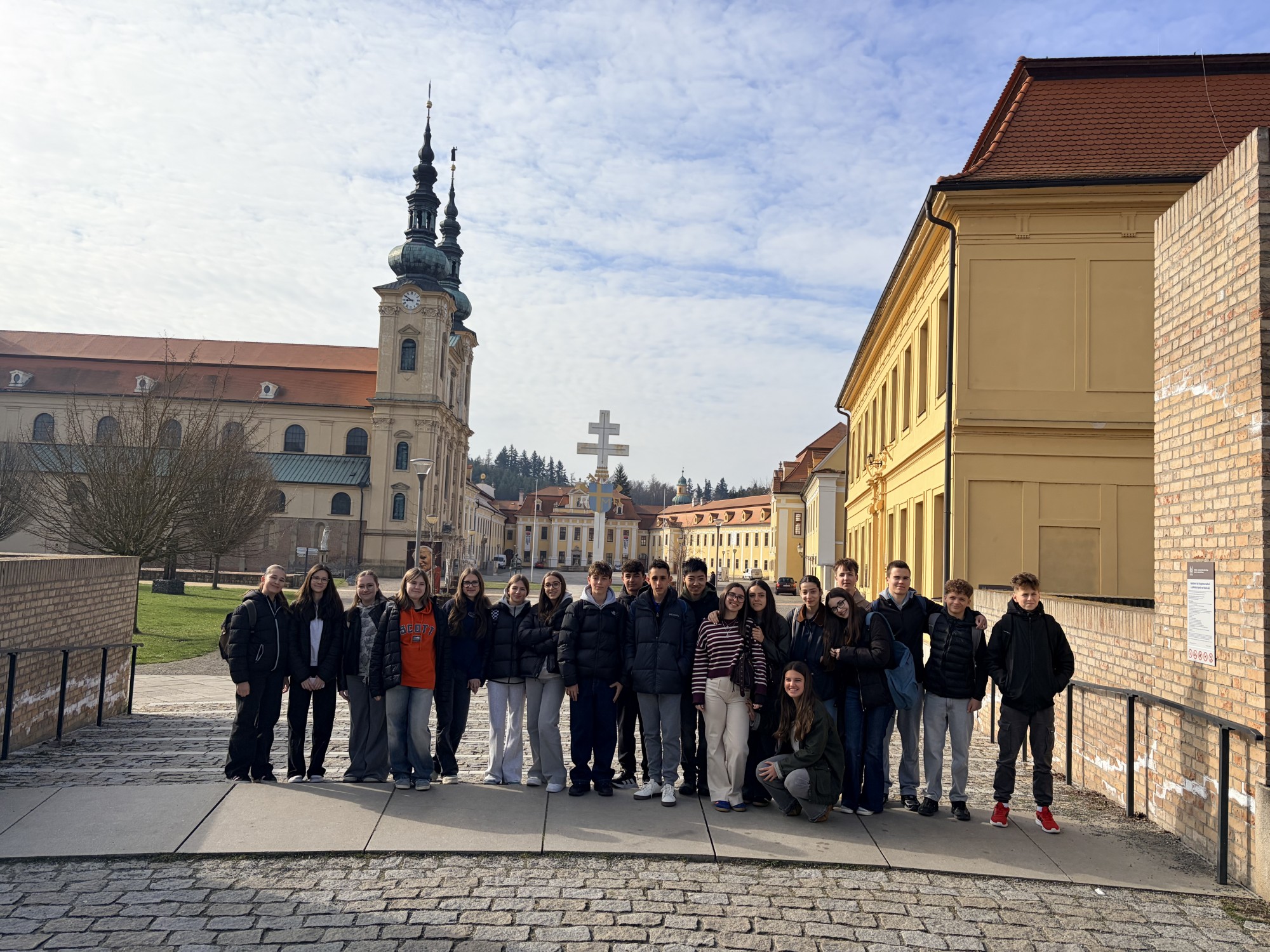 Ráno jsme vyrazili autobusem z Uherského Hradiště na Velehrad. Ukázali jsme Španělům toto významné poutní místo, navštívili jsme baziliku a řekli si pár zajímavých informací. Nechyběla ani zastávka v obchůdku se suvenýry.