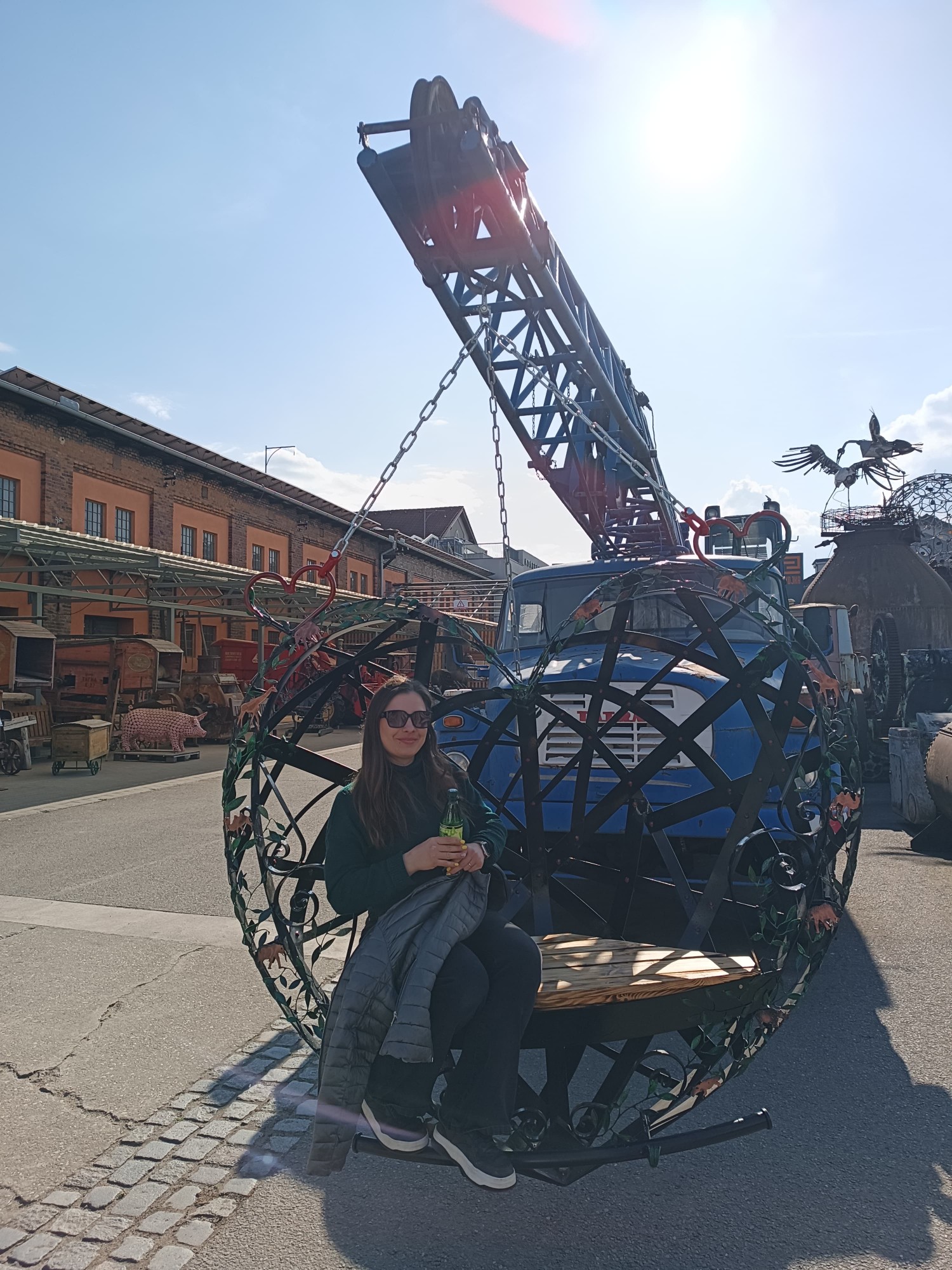 Kolem poledne jsme se přesunuli do Starého Města, do KOVOZOO. Nejdřív jsme se posilnili obědem – kuřecí plátek s hranolkami byl jasná volba.