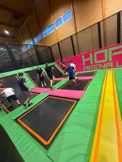 Kolem 15:30 jsme se vrátili zpět do Uherského Hradiště, ale tím program nekončil. Žáci se totiž domluvili, že ještě společně vyrazí do jump arény – a podle fotek, které nám poslali, si to užili naplno.