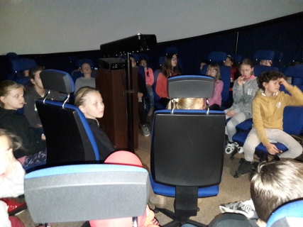 Děti své putování zakončily v digitálním planetáriu, kde pozorovaly prostřednictvím simulátoru vesmírná tělesa a unikátní přistání sondy na kometě Rosseta. Žáci si užili velmi zajímavé dopoledne a dozvěděli se mnoho nových informací o naší Sluneční soustavě.