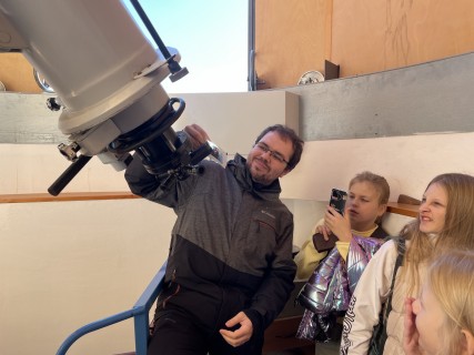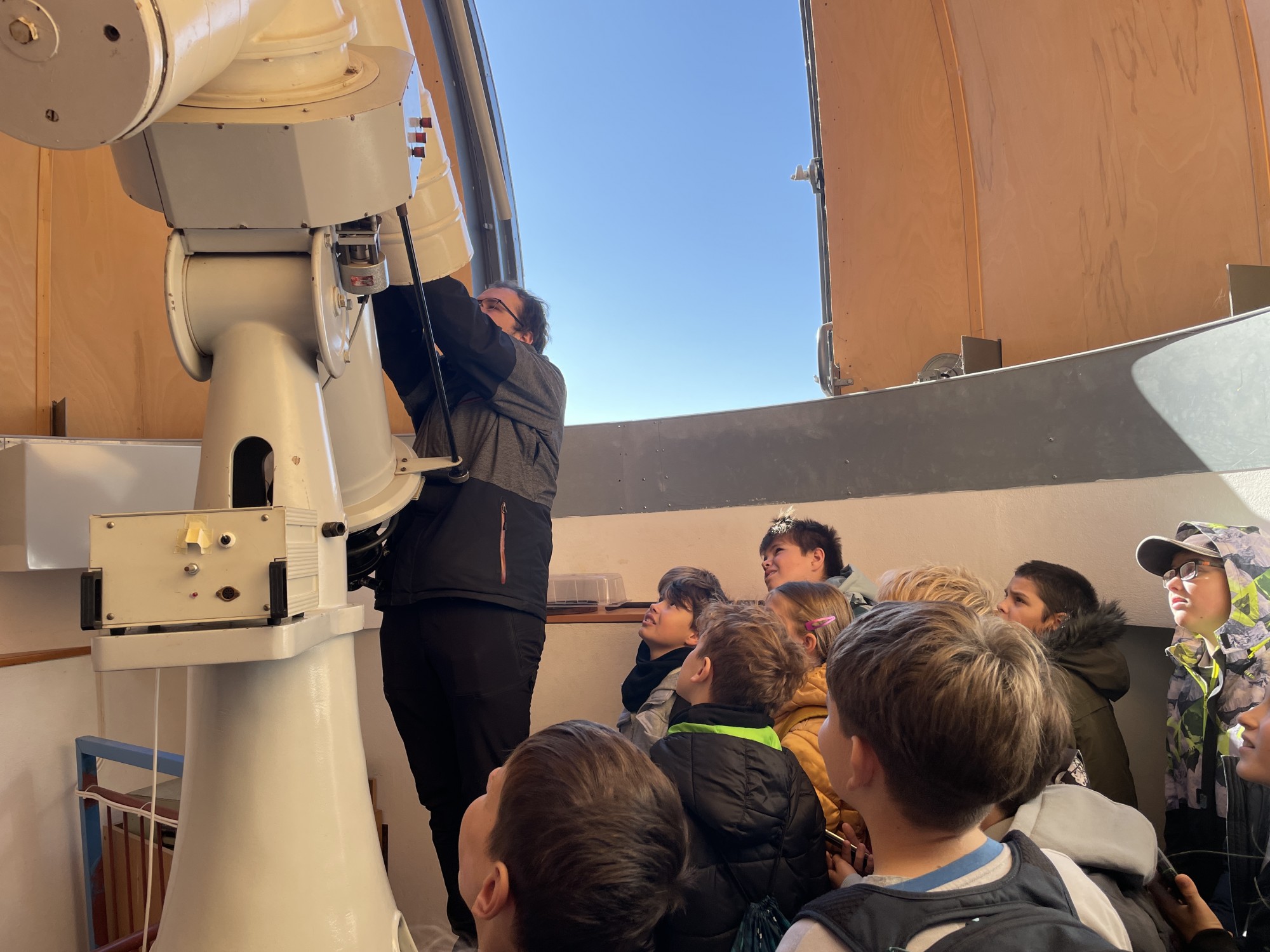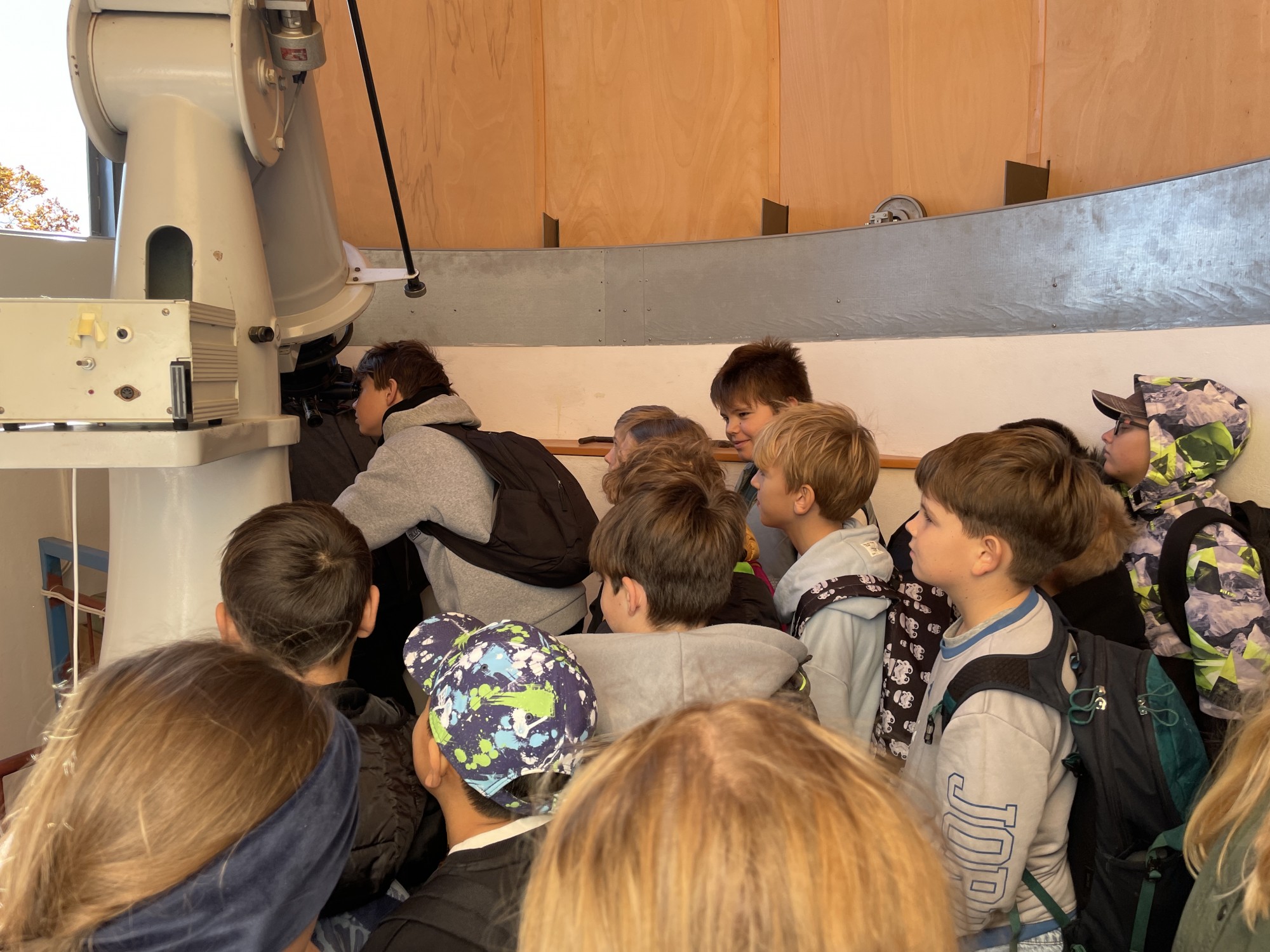 Závěrečnou část exkurze tvořila návštěva hvězdárny, kde měli žáci možnost prostřednictvím speciálního dalekohledu pozorovat Slunce a seznámit se s principy bezpečného pozorování hvězd.