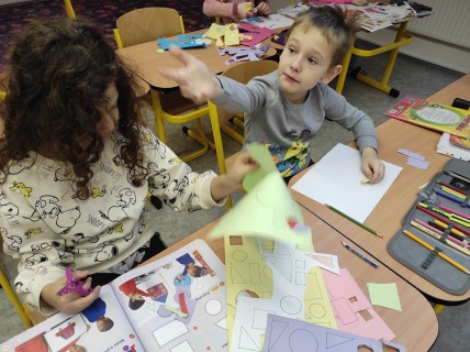 Hravou formou jsme se žáky v rámci Anglického jazyka rozpoznávali, skládali, procvičovali základní geometrické tvary (např. kruh, čtverec, obdélník, trojúhelník) a zkusili poskládat zajímavé obrazce.