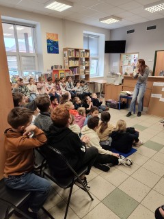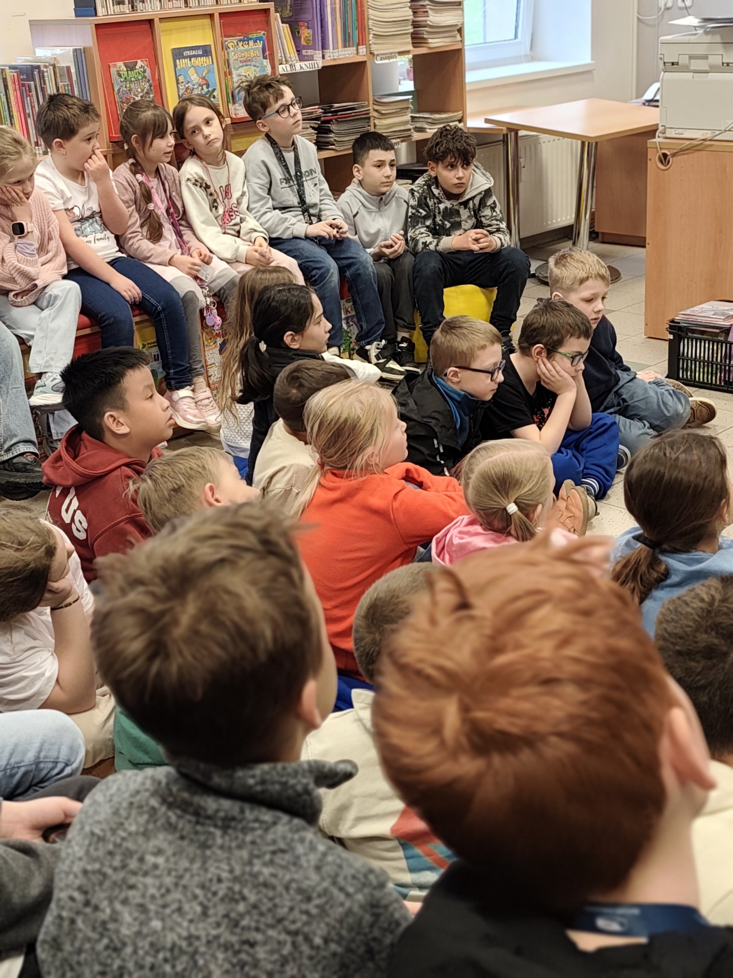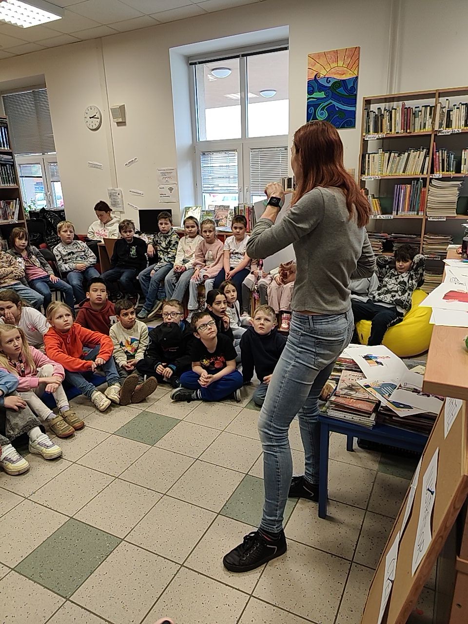 V posledním březnovém týdnu jsme navštívili knihovnu, kde jsme se ponořili do světa knih a jejich vzniku. Dozvěděli jsme se, kde se knihy tisknou a jak celý proces probíhá – od prvního návrhu textu a ilustrací přes samotný tisk, skládání stránek, vazbu až po finální úpravy. Velmi nás zaujalo i „tajemství stránky 17“, díky kterému jsme pochopili, jak se stránky při tisku správně řadí, aby na sebe v knize navazovaly.