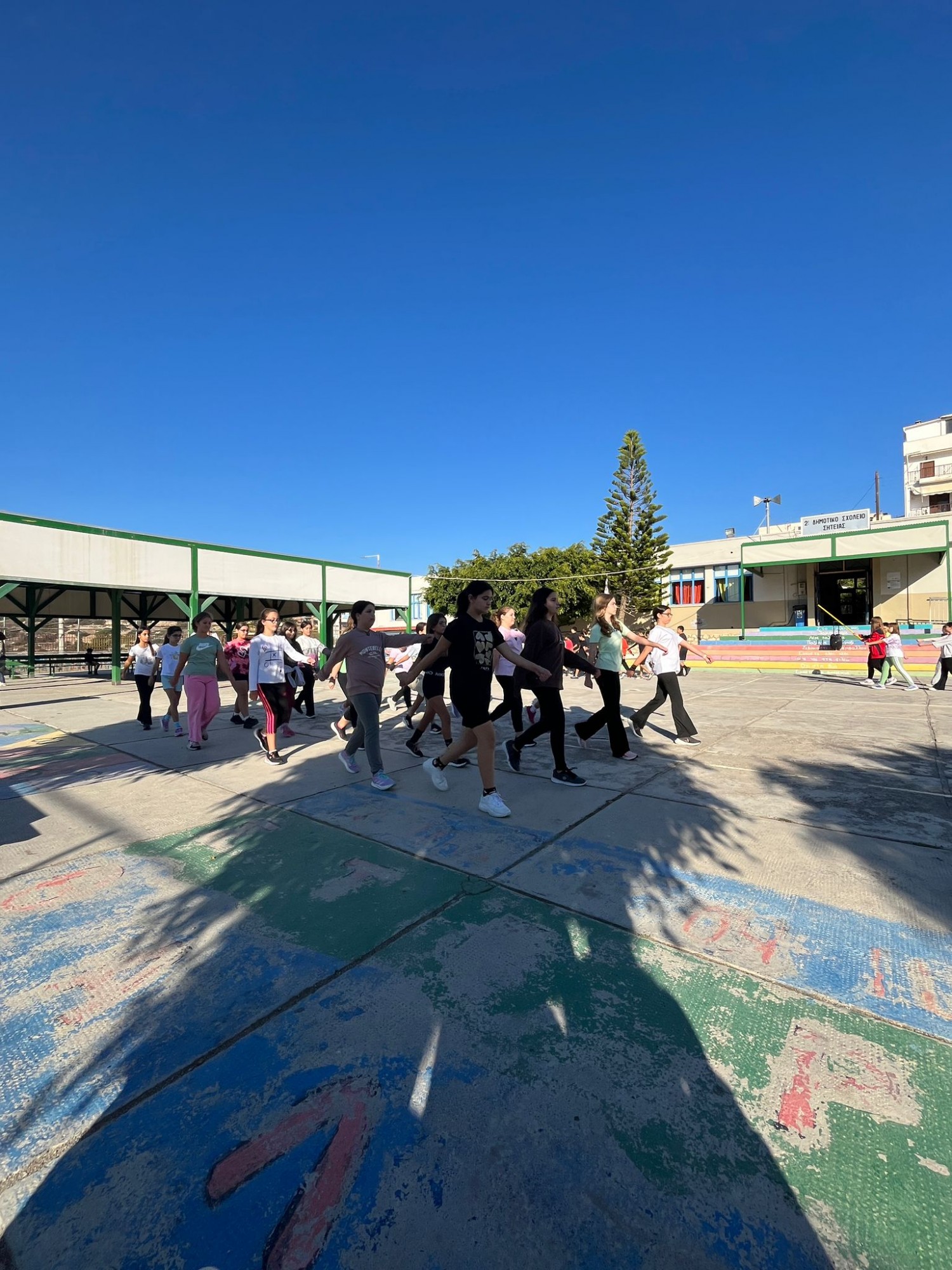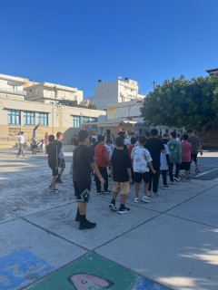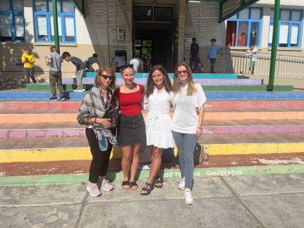 Během jednoho z dopolední jsme se staly také svědky nácviku školního průvodu, kterého se účastní všichni žáci 5. a 6. ročníku. Tento průvod je pořádán na počest státního svátku Dne „Oxi“, kdy si Řecko připomíná odmítnutí Mussoliniho ultimáta v roce 1940, vyjádřené slovem „Oxi“ – „Ne“. Patriotičnost, s jakou se žáci do příprav zapojují, nás velmi zaujala.