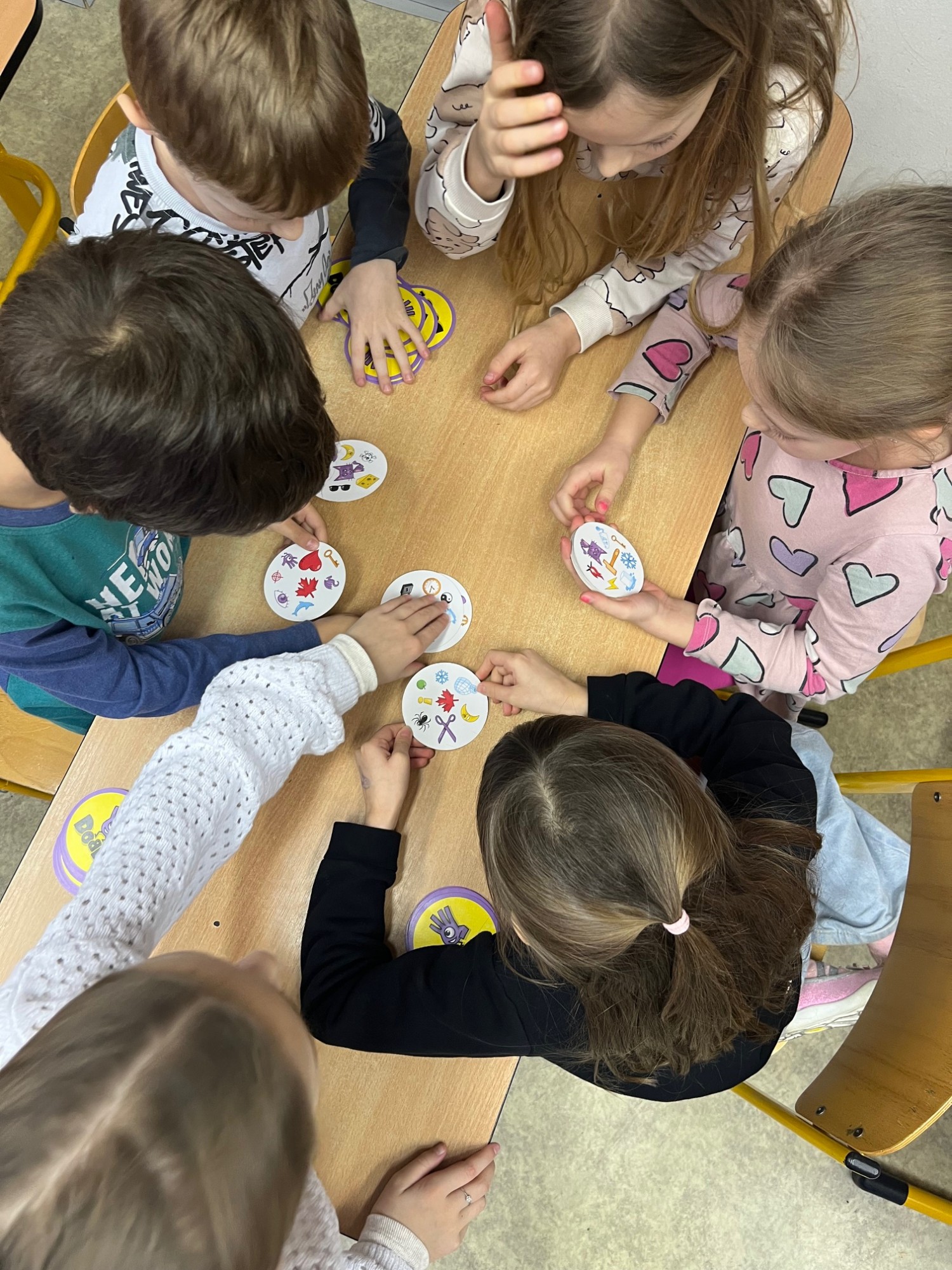 Turnaj probíhal ve velmi přátelské, ale zároveň soutěživé atmosféře. Hra Dobble prověřila rychlost, postřeh i schopnost soustředění. Děti se snažily co nejrychleji najít shodné symboly na kartách a získat tak body pro sebe.