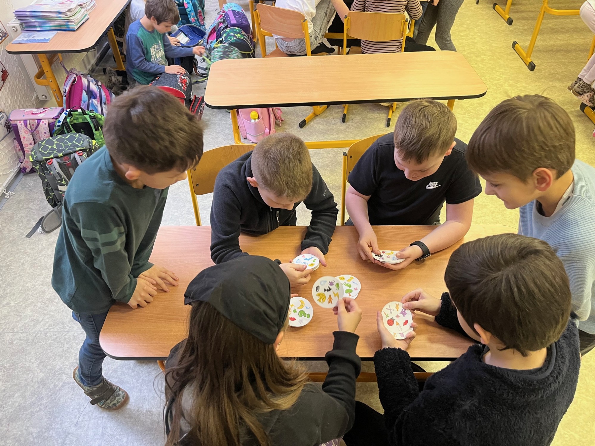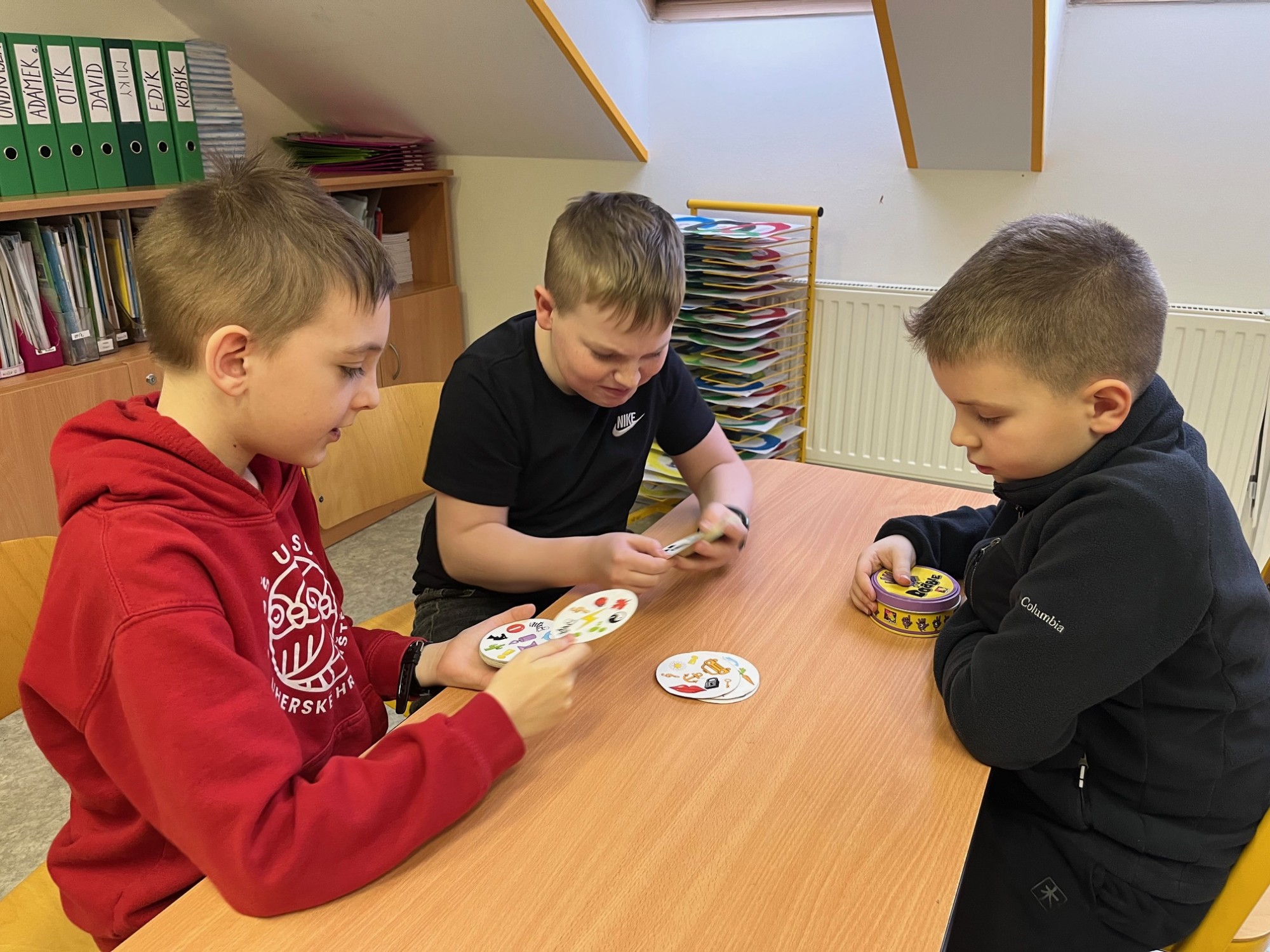Ve školní družině se uskutečnil napínavý turnaj v oblíbené postřehové hře Dobble. Do soutěžení se zapojily děti ze dvou oddělení družiny. Soutěžilo se ve dvou věkových kategoriích – zvlášť mezi sebou poměřily síly děti z 1.C a 2.C a zvlášť děti ze čtvrtých ročníků.