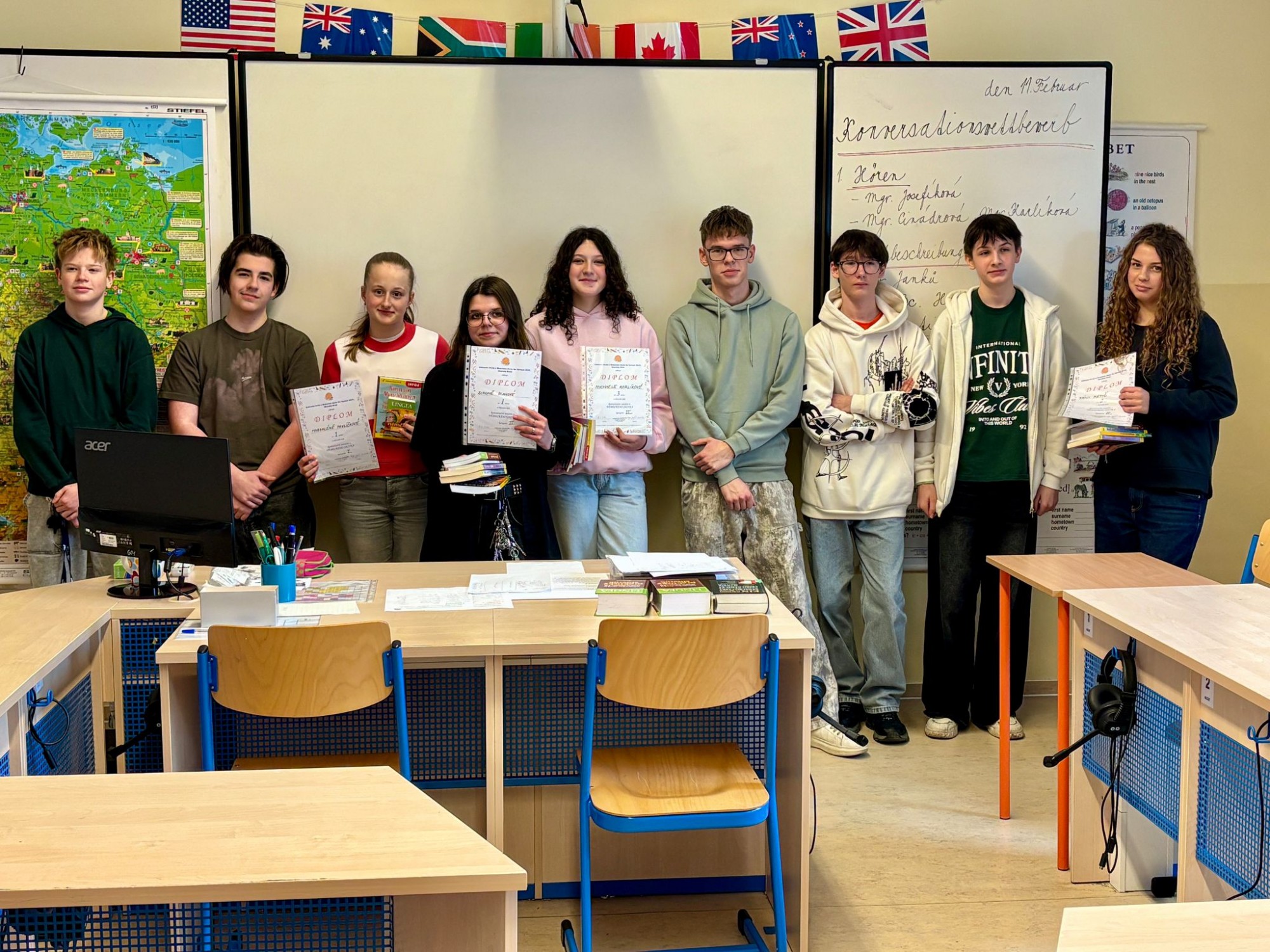 Soutěž byla rozdělena do tří částí – poslech s porozuměním, popis obrázku a konverzace na vylosované téma. Míša prokázala širokou slovní zásobu, jistotu v mluveném projevu a schopnost pohotově reagovat.