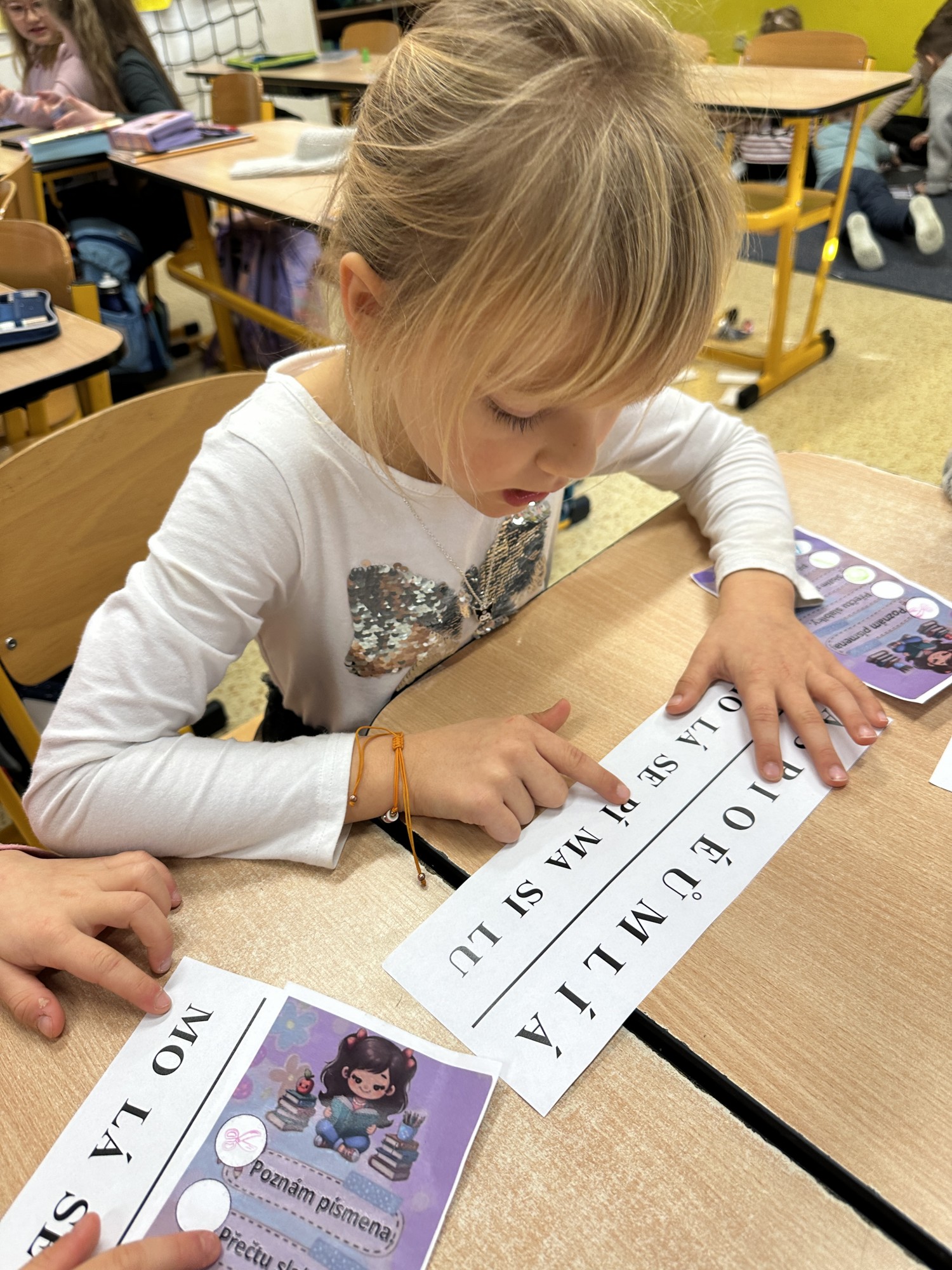 - Skládání slov z jednotlivých písmen – děti dokazovaly, že už umí písmenka spojovat do krátkých slov.