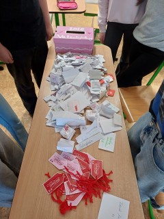 Dneska to u nás na druhém stupni vypadalo, jako by se otevřela tajná poštovní brána přímo do říše lásky. Proběhlo totiž velké valentýnské rozdávání a valentýnek bylo tolik, že by z nich šla postavit menší věž. Nebo alespoň hodně měkký polštář.