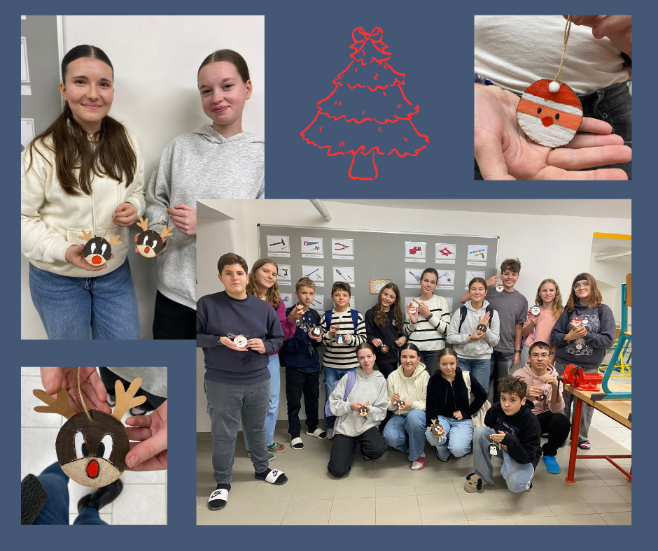 V týdnu před první adventní nedělí jsme se v hodinách pracovních činností pustili do výroby originálních vánočních ozdob ze dřeva. Žáci 6. a 7. ročníku si tentokrát vyzkoušeli postup, který začínal opravdu od samotného materiálu – od kusu surové kulatiny až po hotovou dekoraci připravenou k pověšení na stromeček.