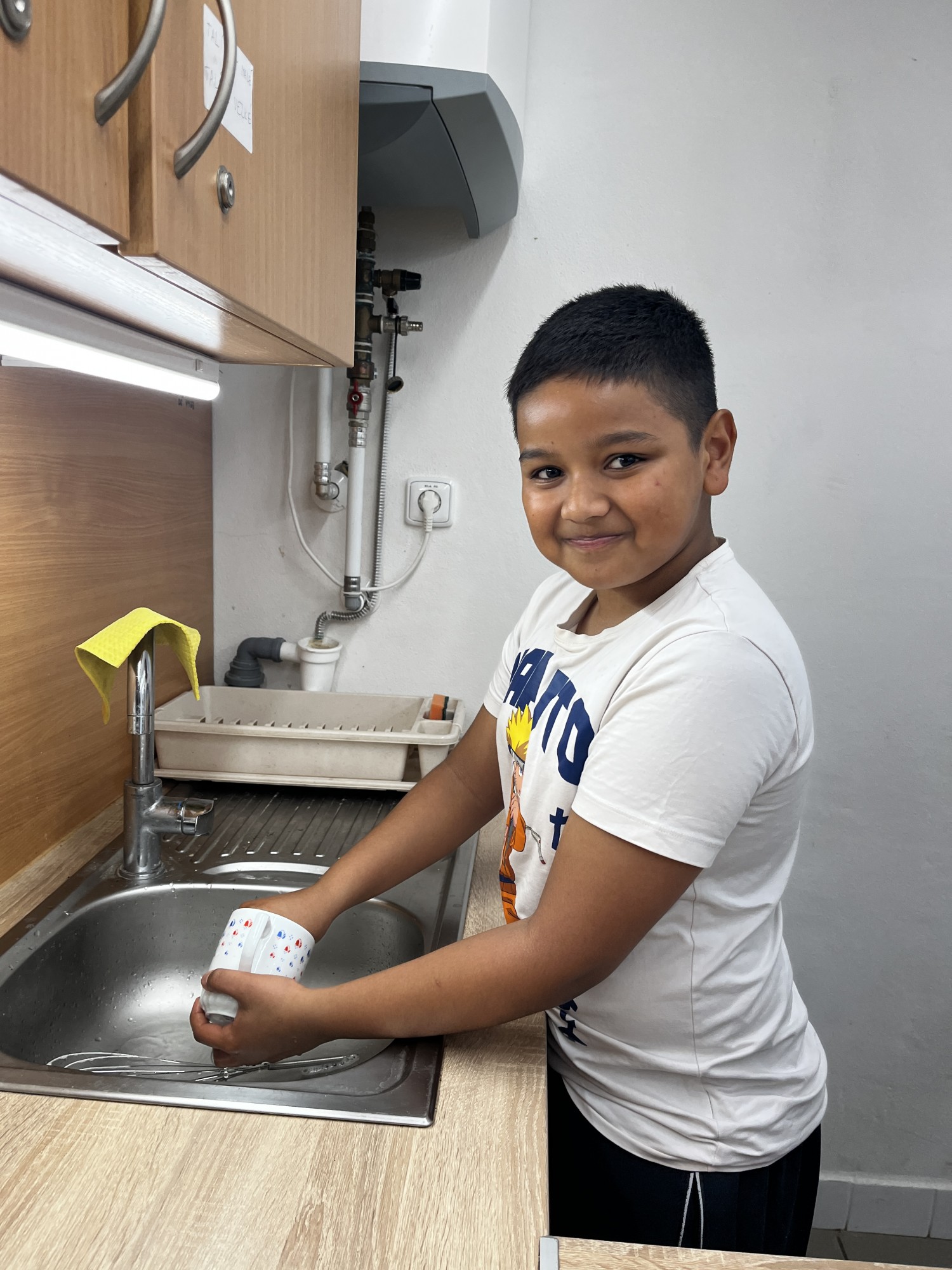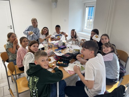 Při práci jsme přirozeně zapojili i matematiku. Procvičili jsme jednotky hmotnosti a objemu, které jsou při pečení nezbytné, a ukázali si, jak důležná je přesnost při odměřování surovin. Žáci tak viděli, že matematika má své pevné místo i v každodenním životě.