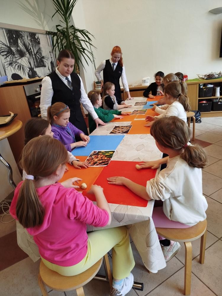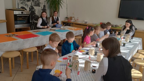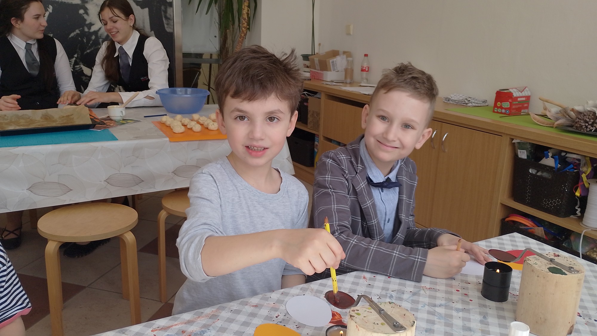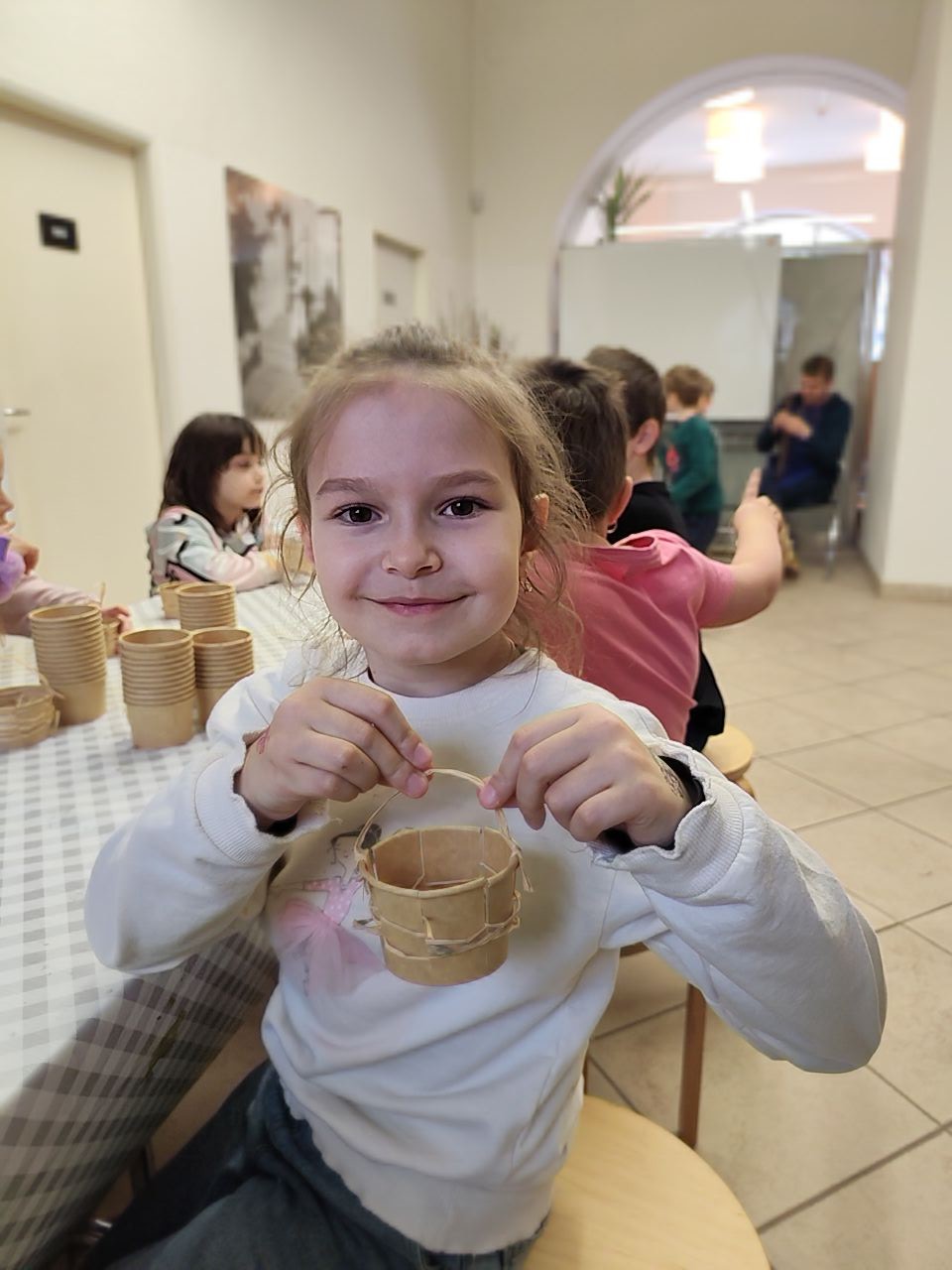 Jako každý rok, tak i letos Slovácké muzeum v Uh. Hradišti uspořádalo Velikonoční tvořivé dílničky. Děti si mohly upéct jidáše, potom si vyrobily papírový košíček s lýkem. První se navnadily u paní, která zdobila vajíčka roztopeným voskem, tak si udělaly své vlastní papírové vajíčko taky voskem. Potom se mohly podívat jak se plete pomlázka nebo vyrábí různé ozdoby ze šustí.