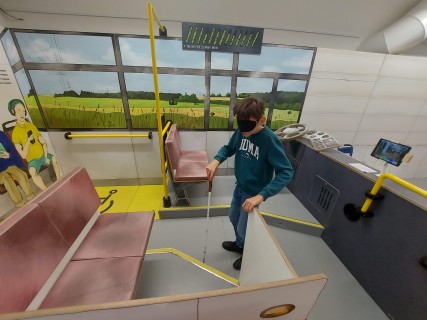 Podtitul výstavy „neobvyklý výlet do světa lidí s hendikepem“ přesně vystihuje, co návštěvníky čeká. Vypraví se na skutečný výlet: od přípravy na cestu, přes orientaci v terénu a použití dopravního prostředku, až po sdílení zážitků z cest. V expozici proto nechybí například model autobusu nebo temný tunel znesnadňující orientaci.