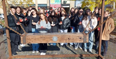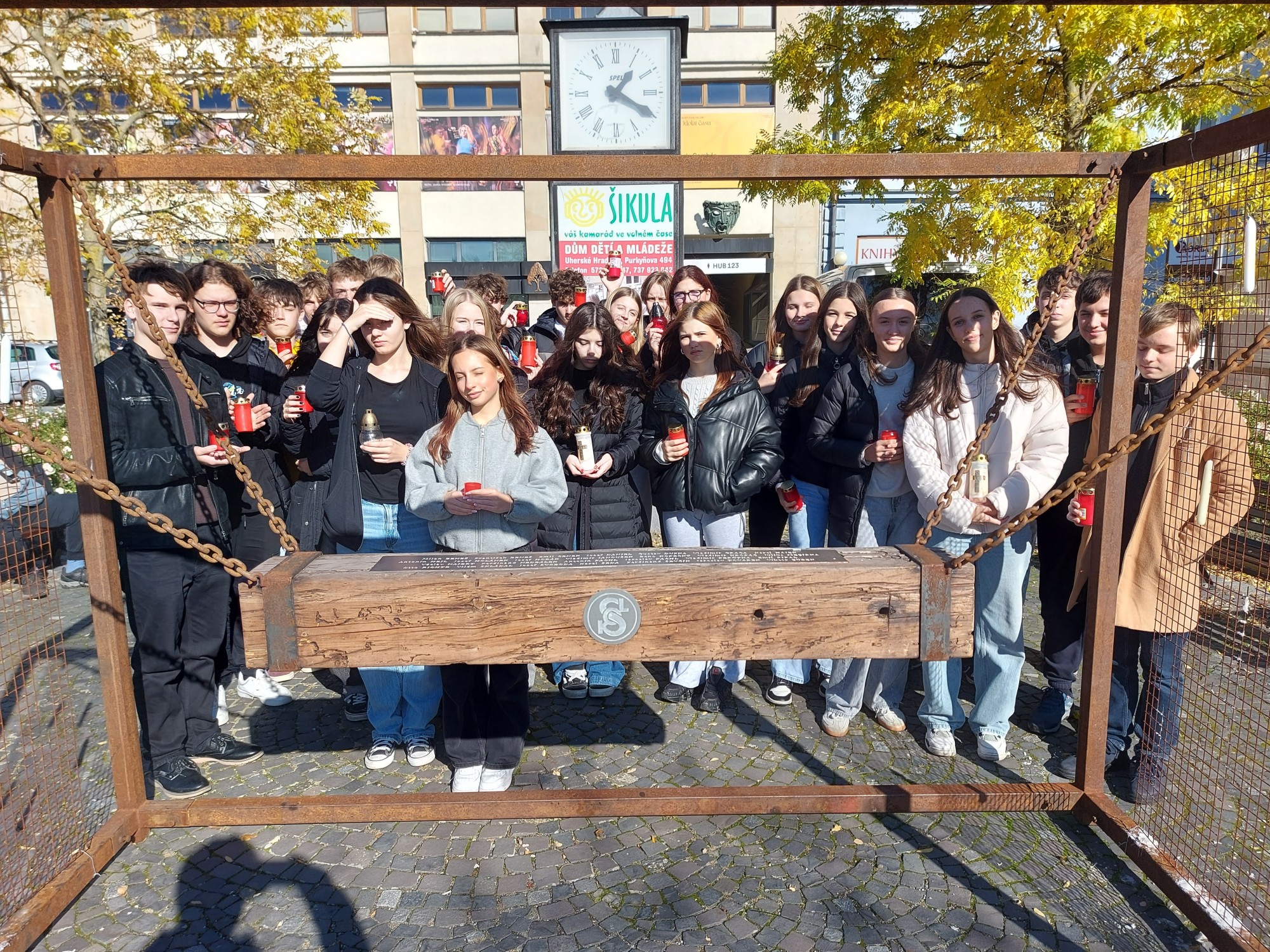 Dne 21. října uctili žáci 9.B památku členů a členek Sokola z Uherského Hradiště, kteří zahynuli během II. světové války zapálením 28 svíček u památníku na Mariánském náměstí.