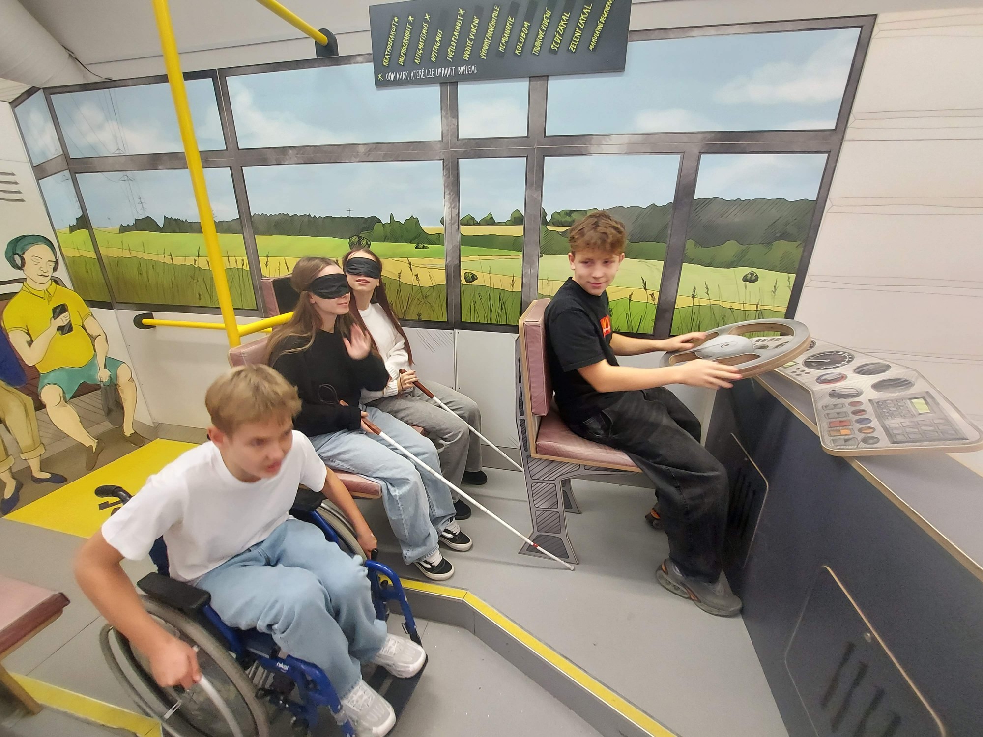Podtitul výstavy „neobvyklý výlet do světa lidí s hendikepem“ přesně vystihuje, co návštěvníky čeká. Vypraví se na skutečný výlet: od přípravy na cestu, přes orientaci v terénu a použití dopravního prostředku, až po sdílení zážitků z cest. V expozici proto nechybí například model autobusu nebo temný tunel znesnadňující orientaci.