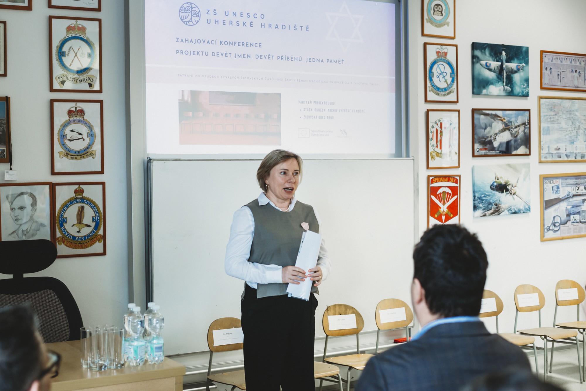 V pondělí 20. dubna od 15 hodin proběhla na ZŠ UNESCO zahajovací konference projektu Devět jmen. Devět příběhů. Jedna paměť., který se věnuje pátrání po osudech devíti židovských žáků naší školy z období druhé světové války. Projekt vzniká ve spolupráci se Státním okresním archivem v Uherském Hradišti a jeho cílem je připomenout konkrétní lidské příběhy, které byly násilně přerušeny během holocaustu.