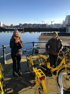 Prvně nás čekalo tour po centru města na kolech od spolku Yellow Bike a poté jsme šli obdivovat město a nakupovat. Po cestě jsme narazili na typické amsterdamské budovy, velkoobchody, dobré jídlo atd. Velmi jsme si to užili, protože jsme poznali i některé rodiče a sourozence našich hostitelských rodin. Ve vlaku jsme potkali vstřícné dámy, které s námi zpívaly písničky a pak nám popřály šťastnou cestu domů, kterou budeme absolvovat zítra večer.