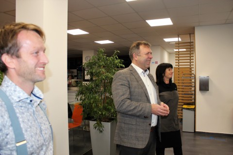Hned u vstupu je přivítali spolu s ředitelem Jiřím Durďákem také starosta města Stanislav Blaha a místostarostka Marcela Čechová.