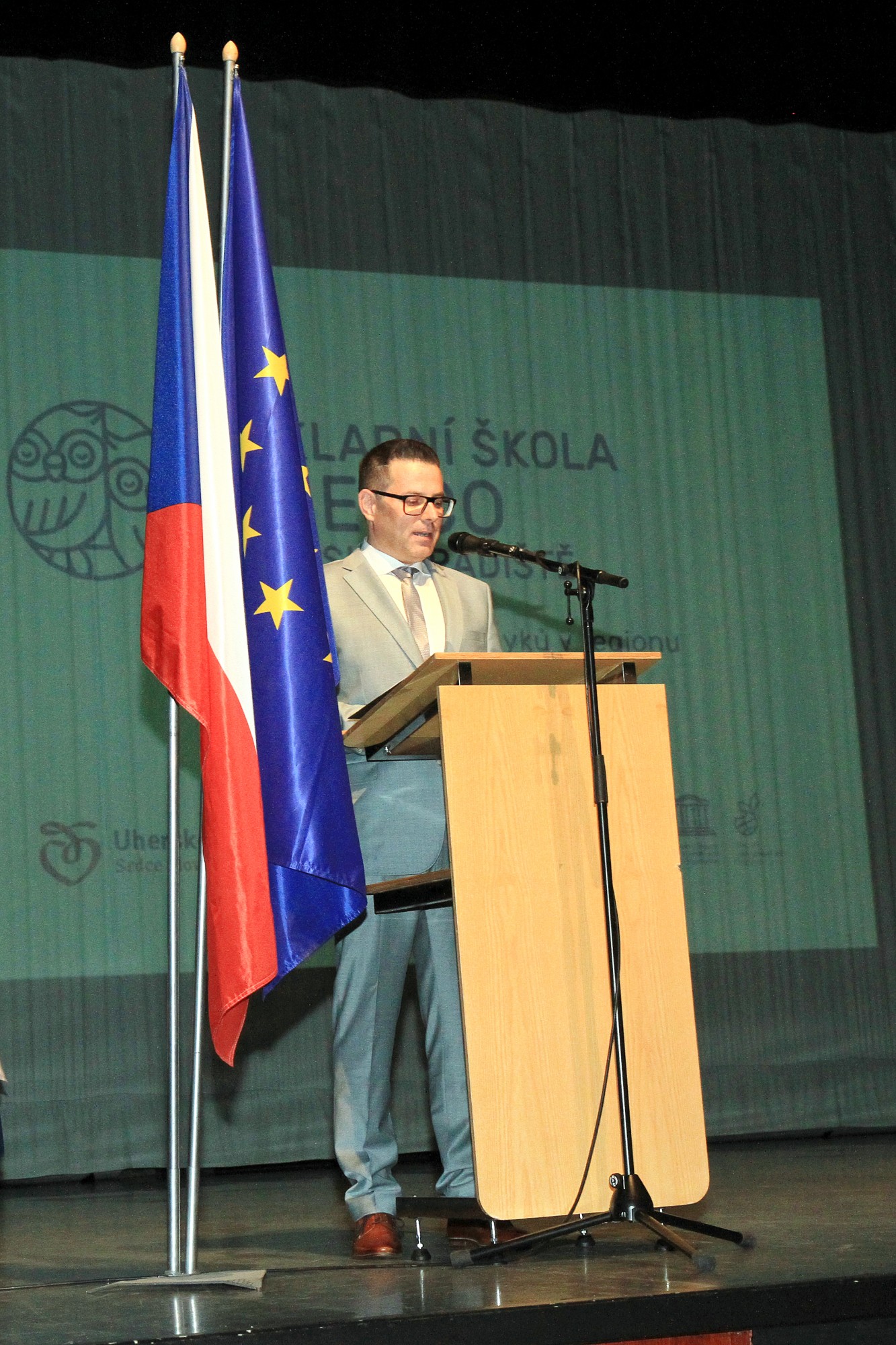 Ceremoniálu byli přítomni jako zástupci zřizovatele starosta města pan Ing. Stanislav Blaha, místostarostka paní Mgr. Jana Grygarová a místostarosta pan Ing. Čestmír Bouda. Zároveň škola měla velkou čest přivítat vzácnou návštěvu z Britské rady paní Karolínu Baines.