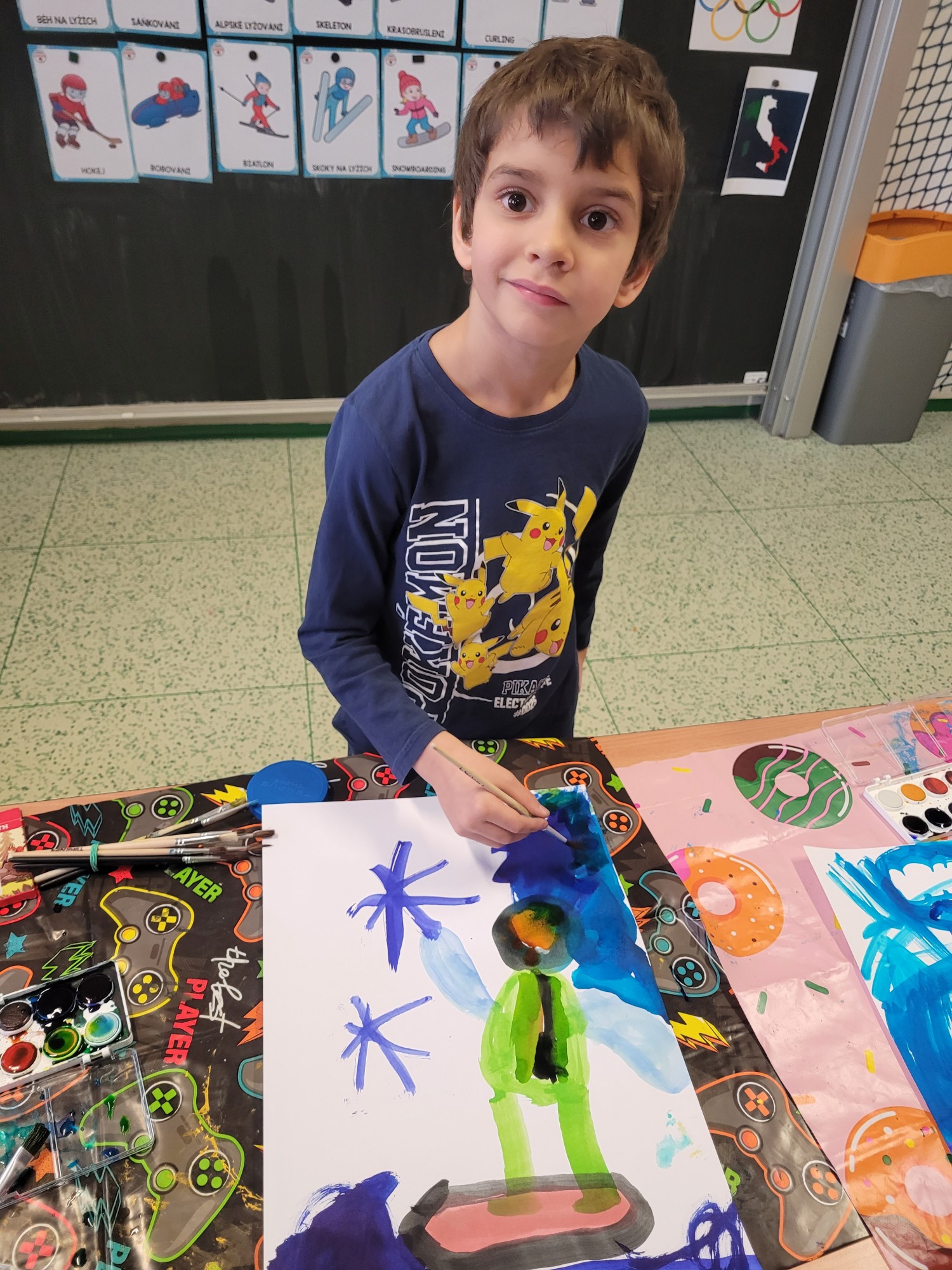 Minulý týden proběhl v 1.C projekt Zimní olympijské hry inspirovaný soutěžemi jako jsou Zimní olympijské hry. V tělesné výchově jsme si uspořádali vlastní olympiádu a soutěžili jsme v různých disciplínách. Zkoušeli jsme například sáně, biatlon, skok na lyžích a také hokej jako na opravdové olympiádě. V českém jazyce jsme se učili nové písmenko H jako hokej. Četli jsme slova začínající na H a zkoušeli je psát do sešitu. Také jsme písmenko tvarovali a modelovali. V matematice jsme počítali příklady spojené se sportem a sčítali jsme góly vstřelené do branky. Ve výtvarné výchově jsme malovali zimní sporty a vytvářeli obrázky sportovců na sněhu.