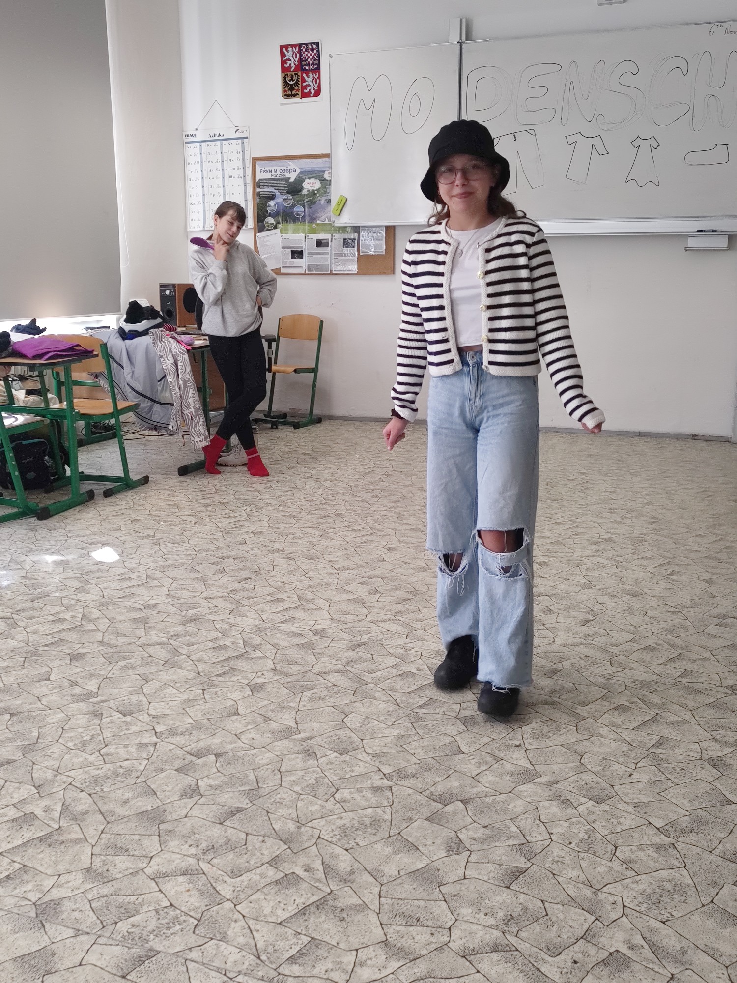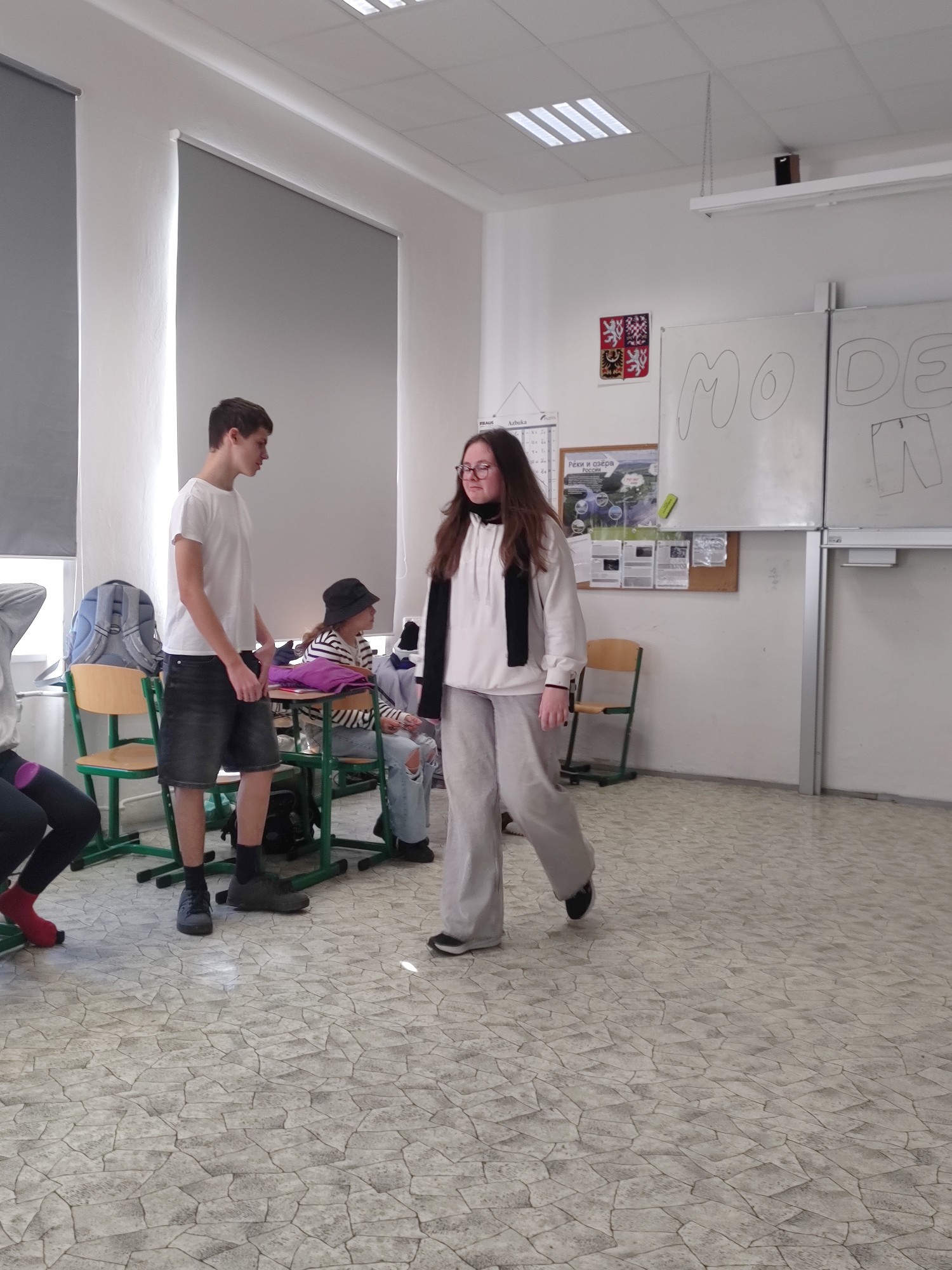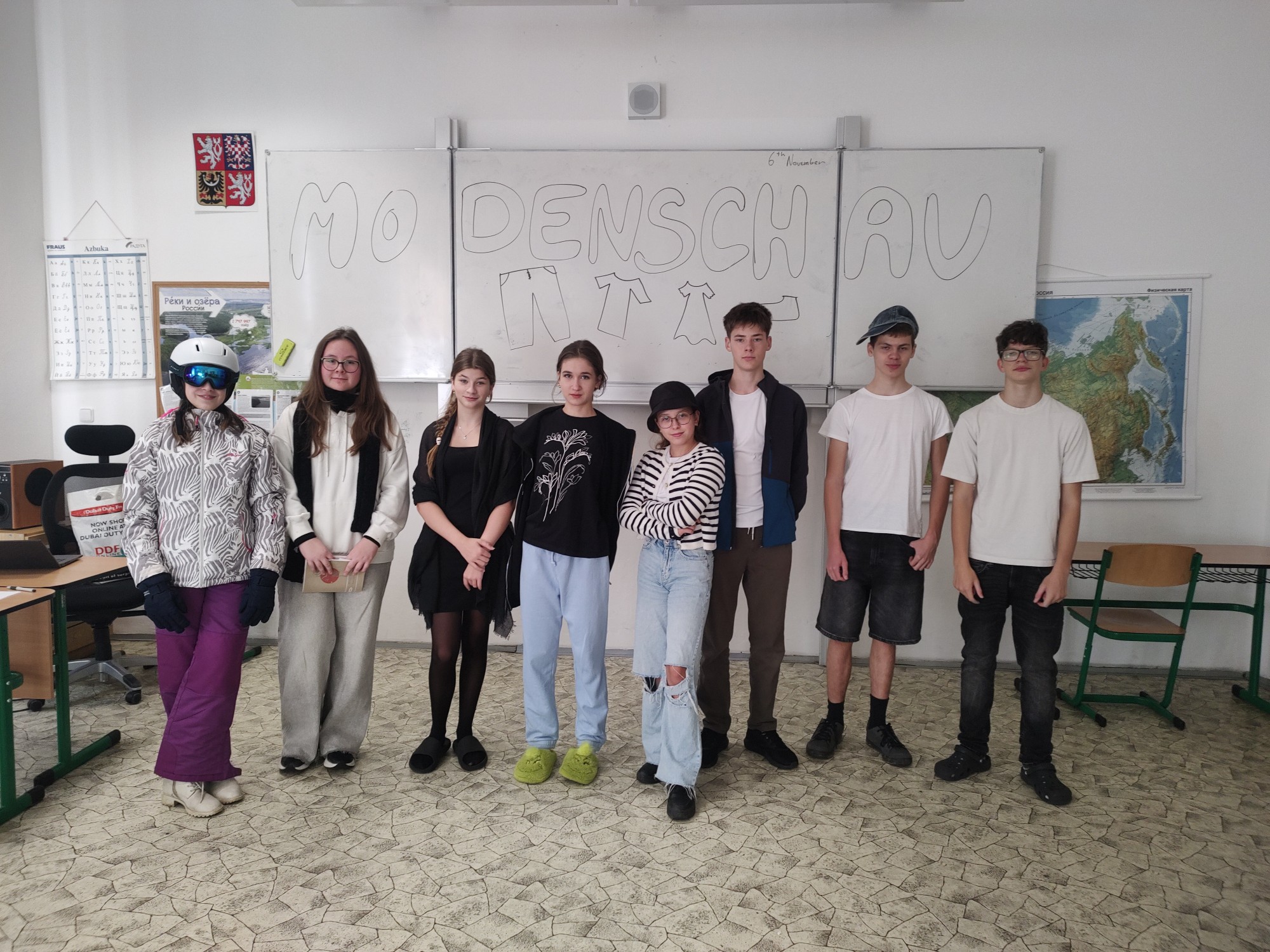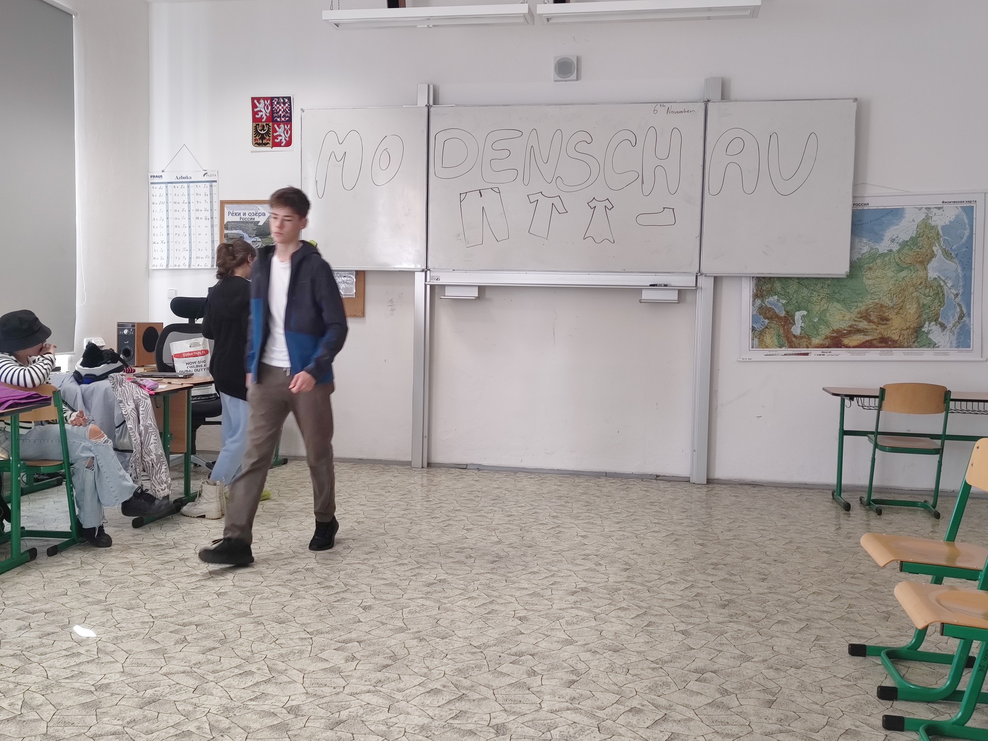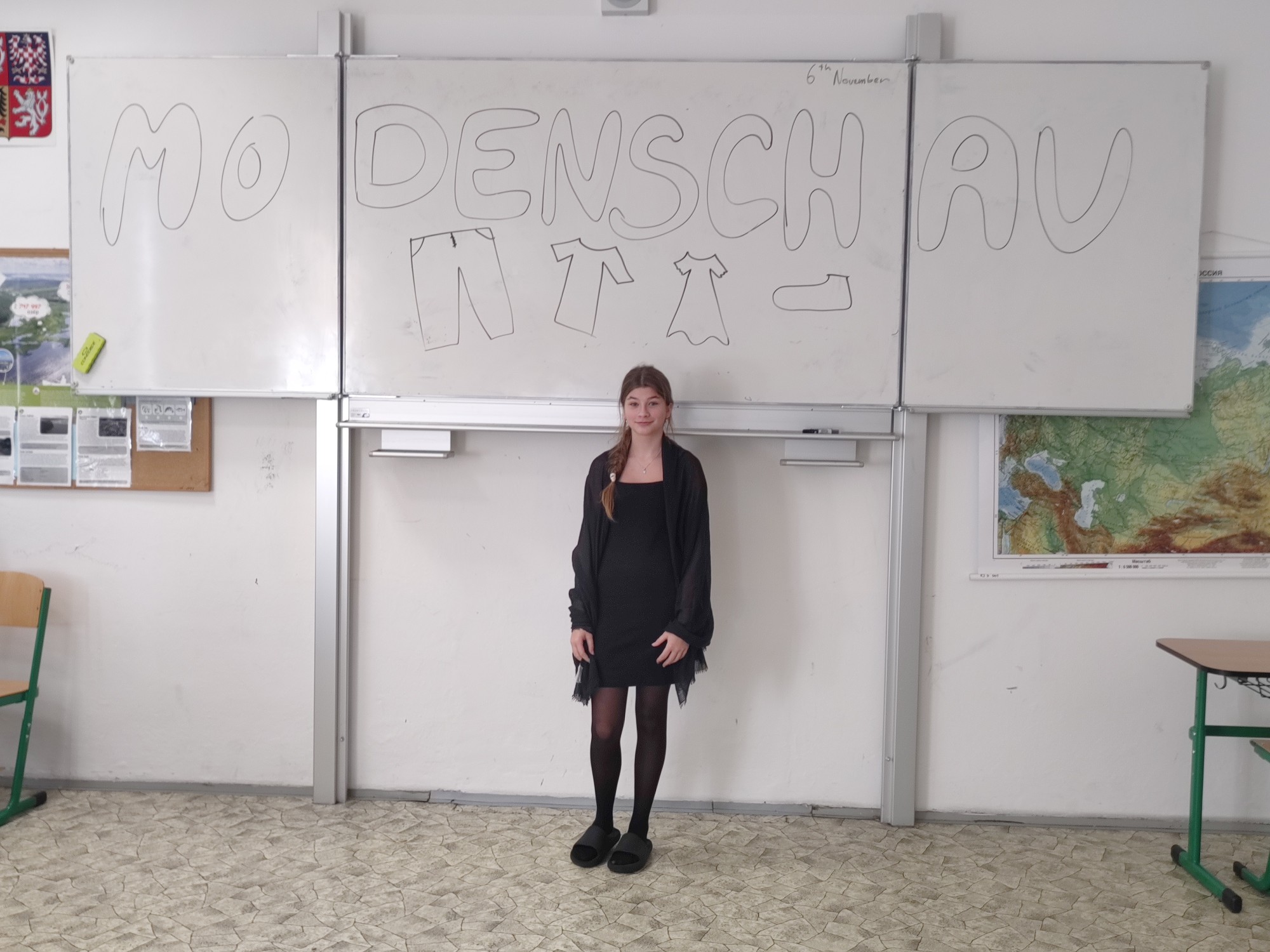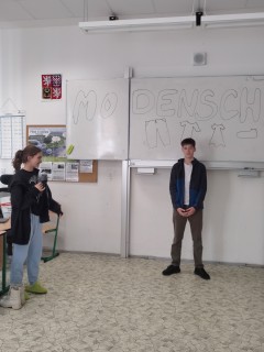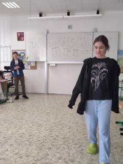 Završením lekce v němčině s tématem In und out byla Modenschau - módní přehlídka, ve které žáci 8. ročníku zužitkovali své nově nabyté vědomosti. Nejenže si vyzkoušeli roli moderátora módní přehlídky, při které popisovali modely svých spolužáků, ale také se na chvíli vžili do role modela či modelky.