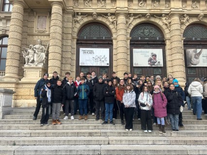 Vybraní žáci druhého stupně se vydali na jednodenní poznávací výlet do rakouské metropole Vídně. Program začal návštěvou Přírodovědného muzea, kde si žáci prohlédli bohaté sbírky minerálů, fosilií, exponátů ze světa živočichů i působivé modely dávno vyhynulých tvorů. Expozice je zaujala nejen svou rozmanitostí, ale i moderním pojetím, které nabízí mnoho interaktivních prvků (např. „živé“ dinosaury).