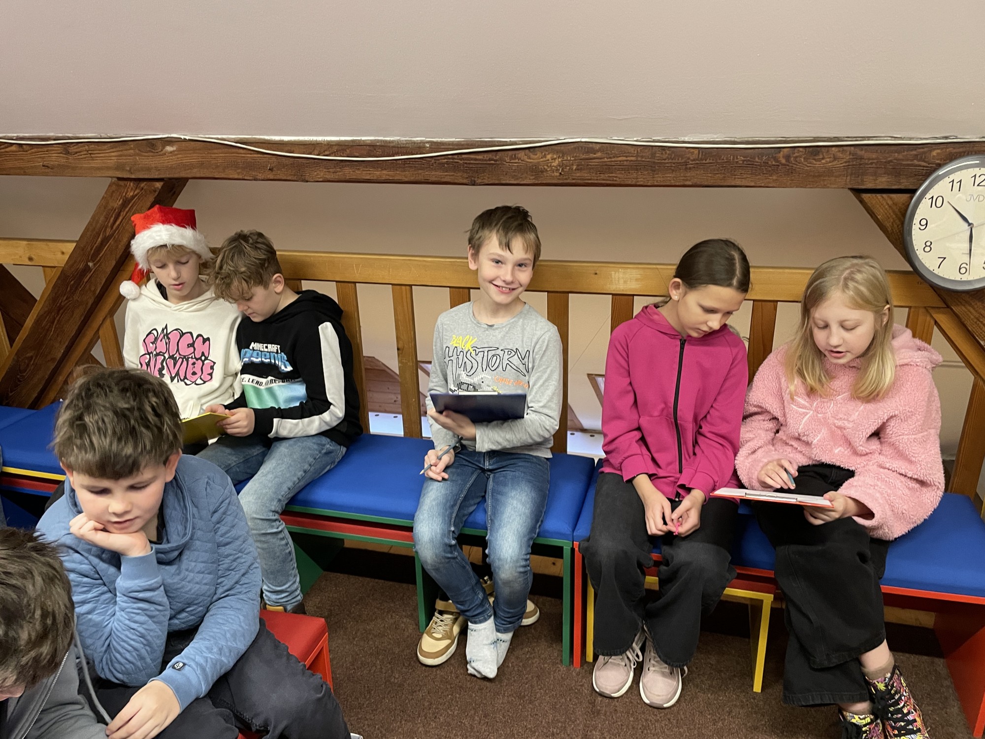 V hodině čtení žáci 5. C navštívili knihovnu BBB, kde si povídali o dobrodružné literatuře pro děti zastoupené autory jako je např. Vojtěch Matocha, dobrodruh Bear Grylls, Lauren Tarshisová, Ivona Březinová nebo Wilbur Smith. Prohlédli si jejich knihy, pracovali s textem a plnili úkoly. Některé knihy děti natolik zaujaly, že si je odnesly domů k přečtení. Hodina v prostorách knihovny byla jako vždy velmi zajímavá a děti se mohou těšit na další návštěvu v knihovně již v lednu.