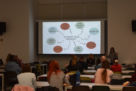 Zatímco děti objevovaly školu, rodiče měli připravený vlastní program. Paní zástupkyně Mgr. Dagmar Janásová společně se školní psycholožkou Mgr. Vendulou Slezáčkovou představily témata školní zralosti a připravenosti, odpovídaly na dotazy a poskytly rodičům cenné informace, které jim mohou pomoci v nadcházejícím období.