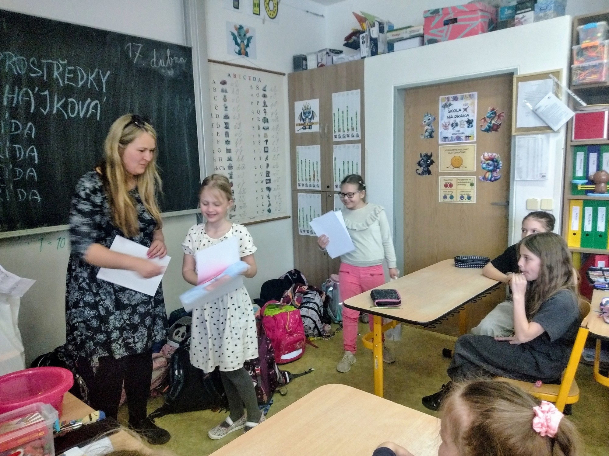 Po dokončení prací jsme uspořádali malou výstavku, aby si děti mohly prohlédnout díla svých kamarádů. Porota složená z vychovatelek měla těžký úkol – všechny obrázky byly nápadité a krásně zpracované. Nakonec jsme ocenili několik prací ve dvou kategoriích a všechny děti dostaly drobnou odměnu za snahu a účast.