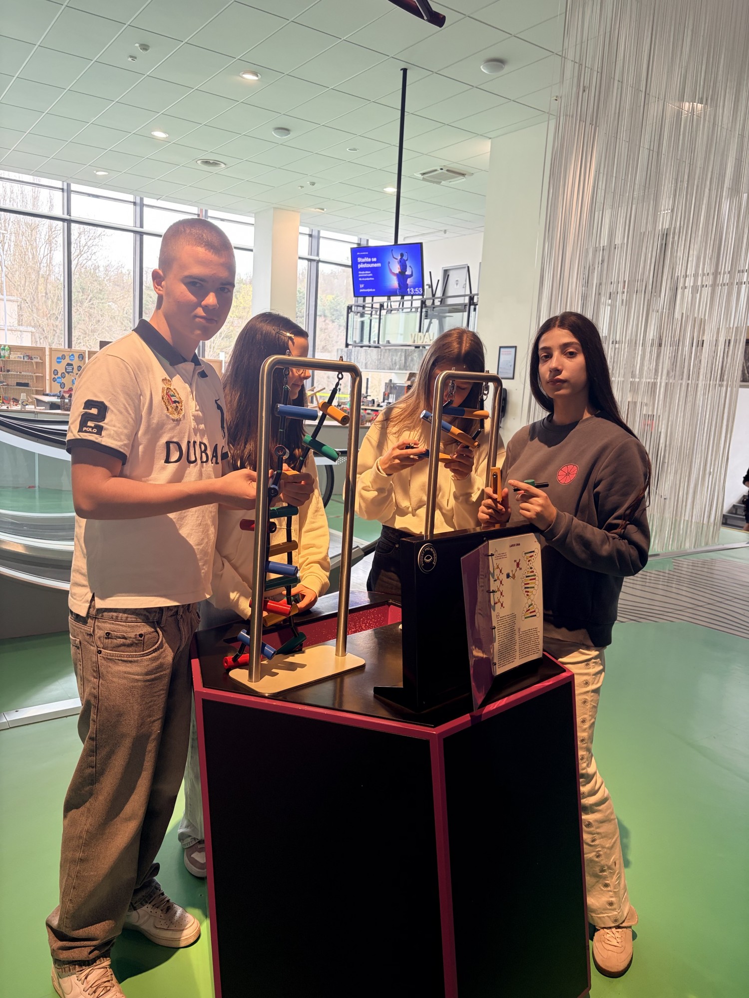 Od hlavního nádraží jsme zamířili na náměstí Svobody, kde jsme si pověděli několik zajímavostí o brněnském orloji a prohlédli si Mariánský morový sloup. Poté jsme se zahřáli teplými nápoji a dali si něco dobrého na zub. Následně jsme se přesunuli šalinou k výstavišti, kde se nachází VIDA! science centrum.