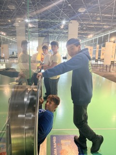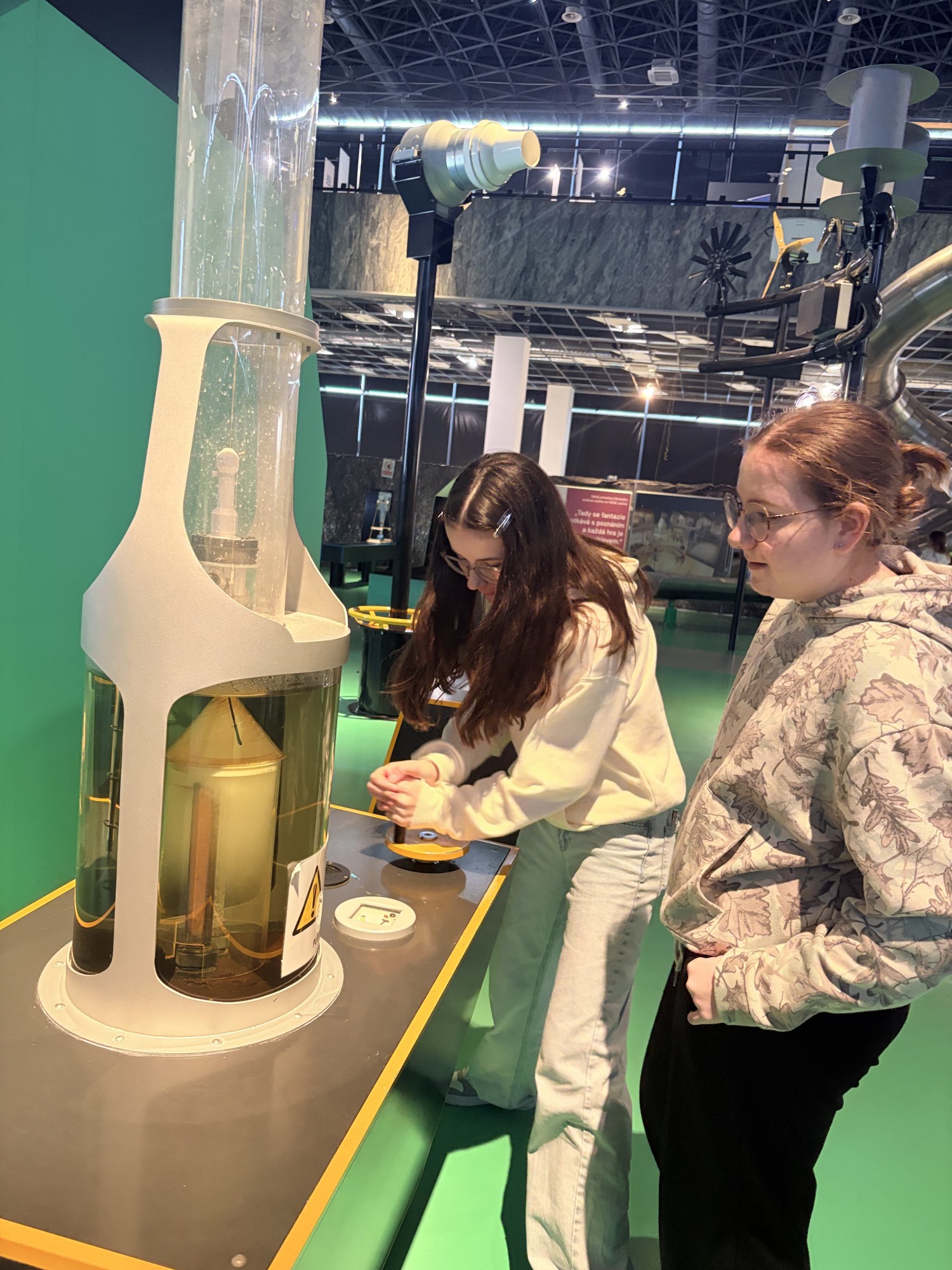 Po programu jsme se přesunuli na oběd do místní jídelny, kde jsme si pochutnali na rýži s vepřovým masem na slanině. Posilněni jsme se poté vydali objevovat expozici science centra. Žáci si mohli vyzkoušet různé experimenty, interaktivní exponáty a na vlastní kůži objevovat fyzikální zákony. Mezi nejoblíbenější atrakce patřil dlouhý tobogán, model dusíkové rakety a vodní vír.