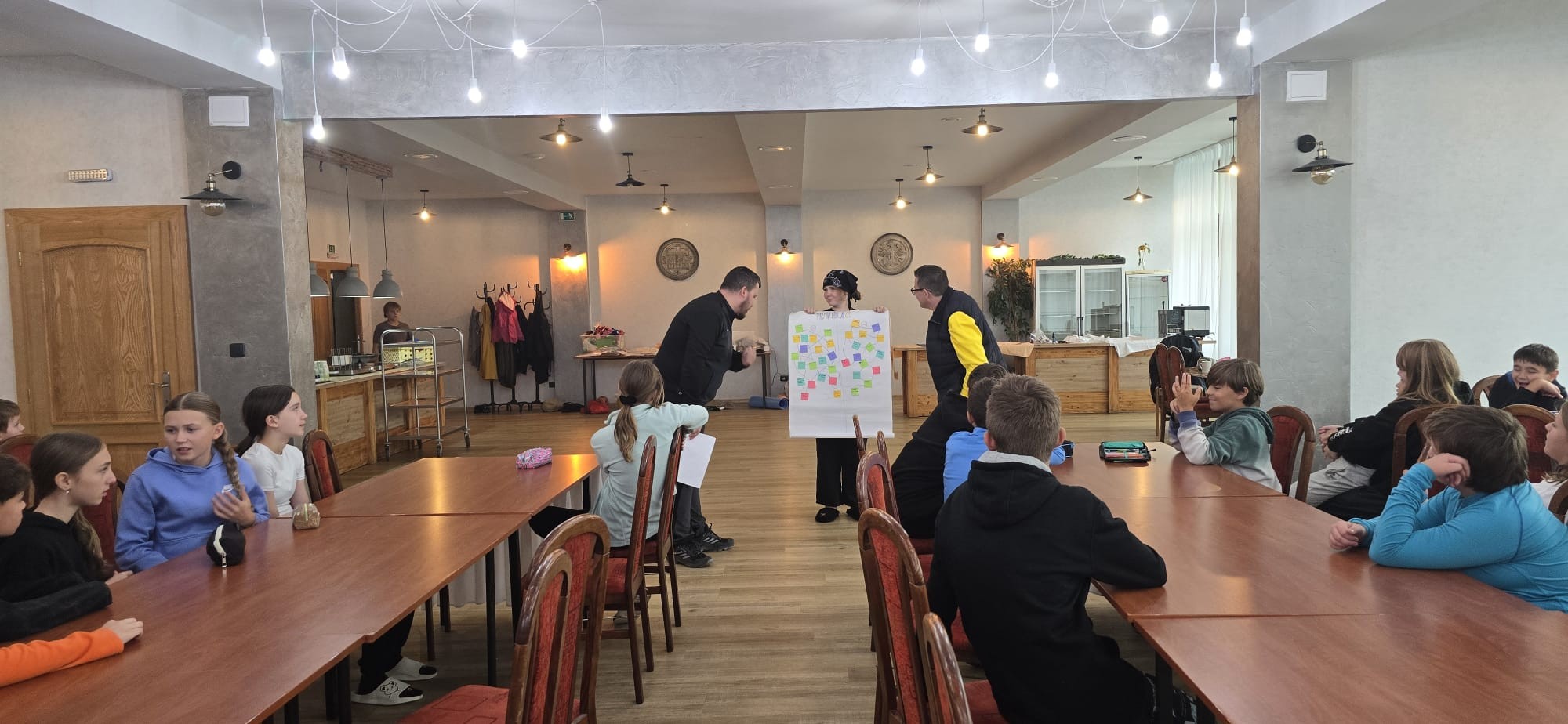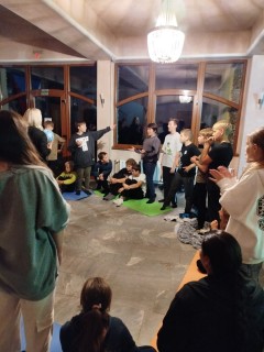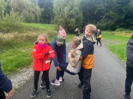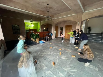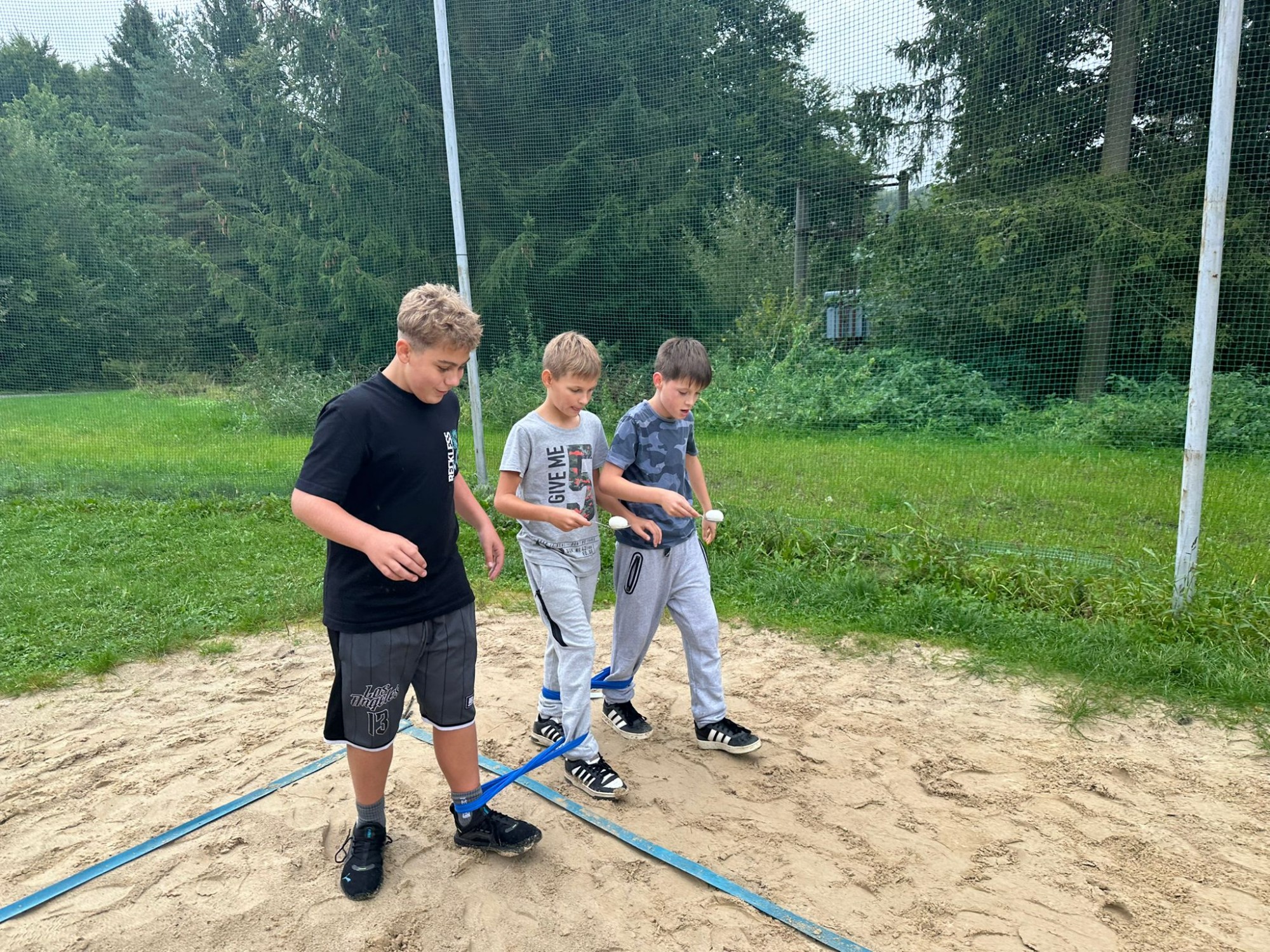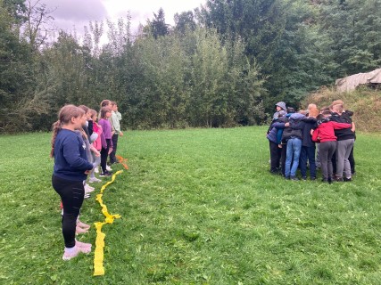 Přestože nás celé tři dny doprovázel déšť a program probíhal převážně uvnitř, nenechali jsme se odradit a program si užili naplno. Hráli jsme různé kooperativní hry a společně překonávali překážky, při kterých se žáci museli domlouvat, plánovat a navzájem si pomáhat. Oblíbenou aktivitou bylo např. společné stavění věže pomocí spojených lan či přesouvání kuliček pomocí korýtek. Žáci si vytvořili společně vlajku třídy, diskutovali o pravidlech třídy a došlo i na malé improvizované divadelní představení.