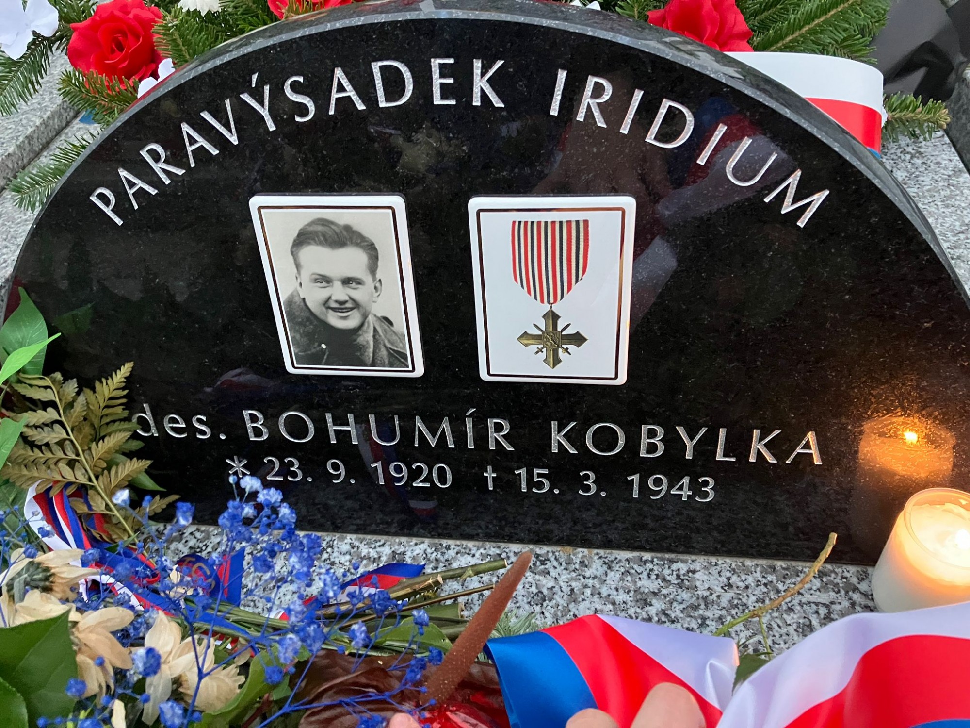 Anastázie Bartošová ze 7.B uctila památku československého vojáka a člena výsadku Iridium Bohumíra Kobylky zapálením svíčky na hřbitově ve Starém Městě.