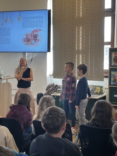 Součástí setkání bylo autorské čtení z její knihy věnované významné osobnosti české historie – podnikateli Tomáši Baťovi s názvem "Jak bratři Baťové obouvali svět". Autorka žákům přiblížila jeho život, podnikatelského ducha i myšlenky, které často předběhly svou dobu. Letos si navíc připomínáme 150 let od jeho narození.