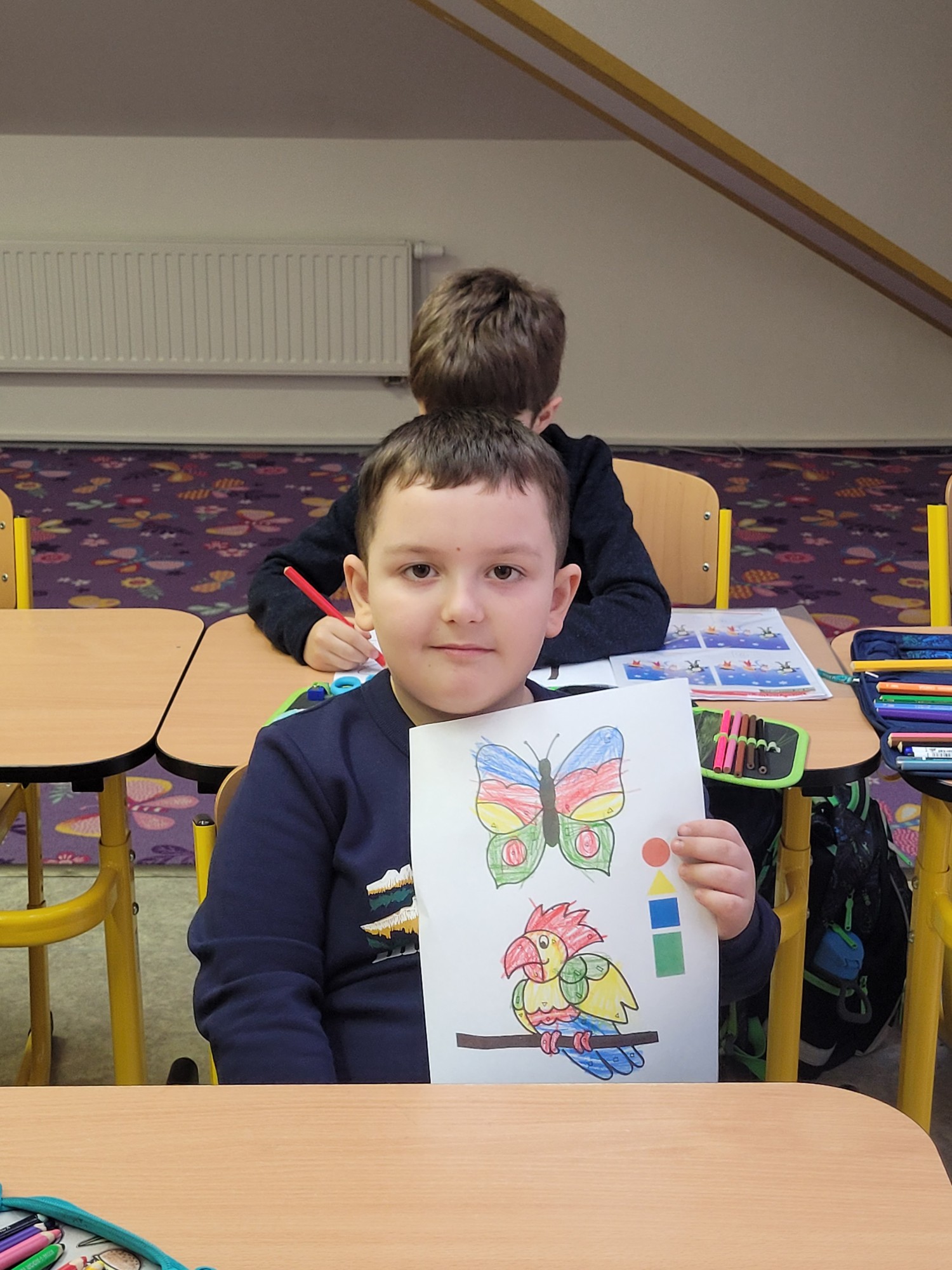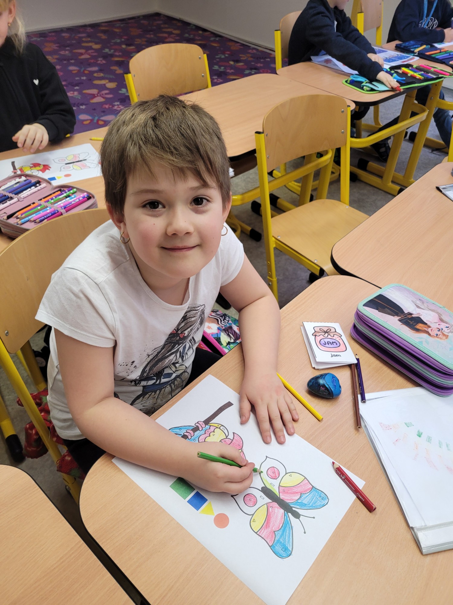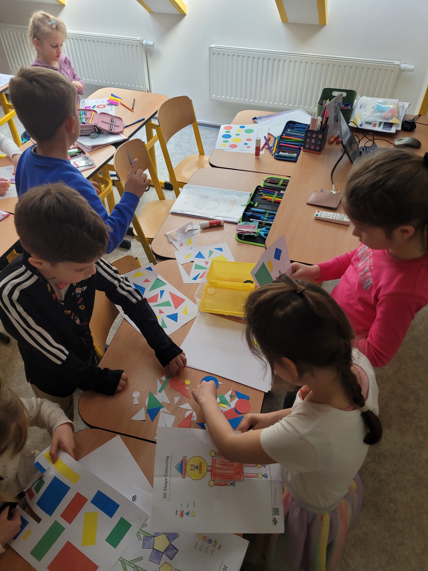 Žáci 1. ročníku se v rámci Cambridge přípravky věnovali tématu Shapes. Děti se naučily pojmenovat základní tvary jako circle, square, triangle a rectangle. Nová slovíčka si procvičovaly hravou formou pomocí her, obrázků i pohybových aktivit. Velkým přínosem bylo propojení angličtiny s výtvarnou činností, kdy žáci tvořili obrázky z různých tvarů. Hodiny byly pro děti zábavné a zároveň rozvíjely jejich jazykové i kreativní dovednosti.