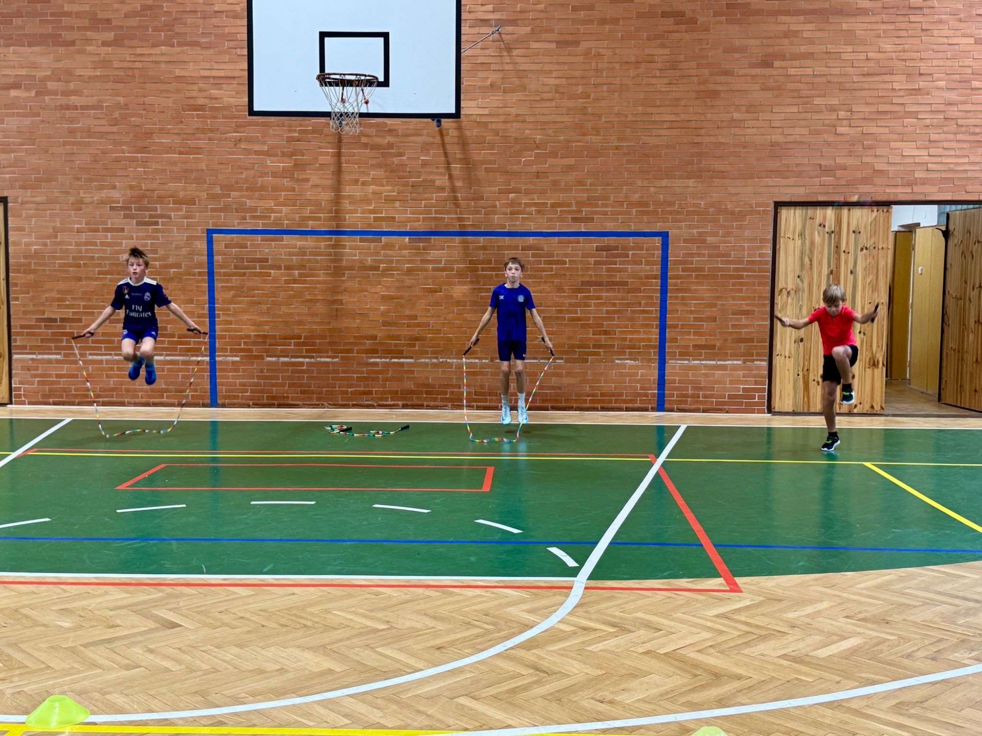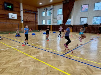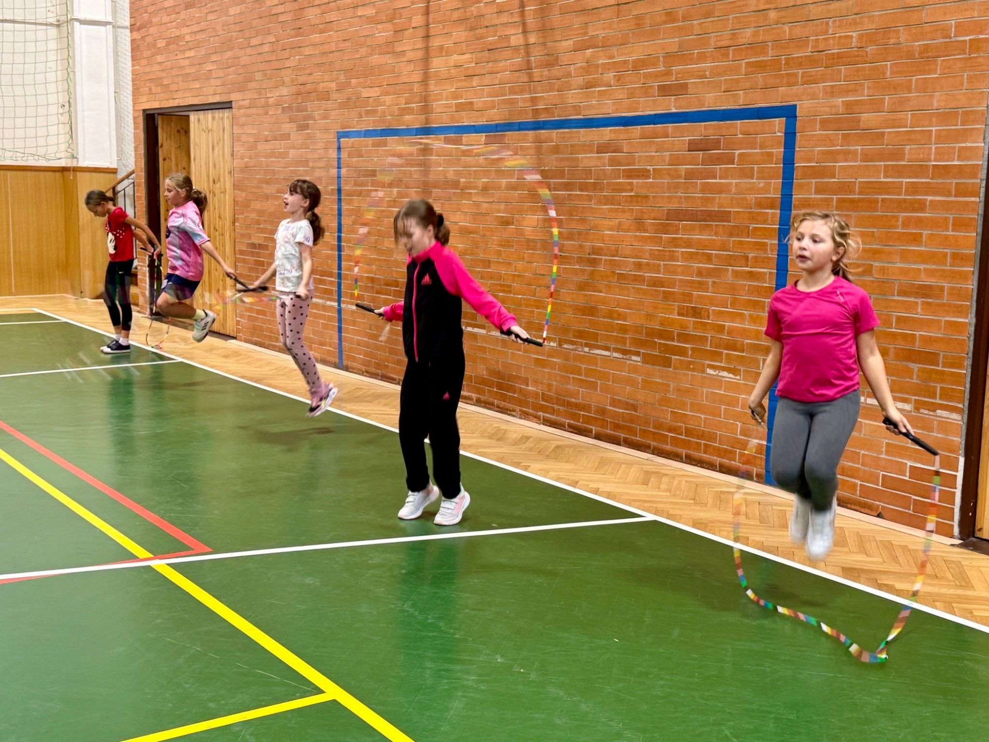 Dnes si žáci čtvrté a páté třídy vyzkoušeli v hodině tělesné výchovy něco, co jejich starší spolužáci už dobře znají – připravily jsme pro ně Tabatu. Pro tyto děti to byla úplná novinka! Tabata je cvičení, kde se střídají krátké, rychlé a intenzivní cviky s krátkými pauzami, a vše probíhá v rytmu hudby. Spojení pohybu, posilování a hudby děti nadchlo – makaly naplno, bavilo je to a z hodiny odcházely s červenými tvářemi, ale spokojené a s úsměvem.