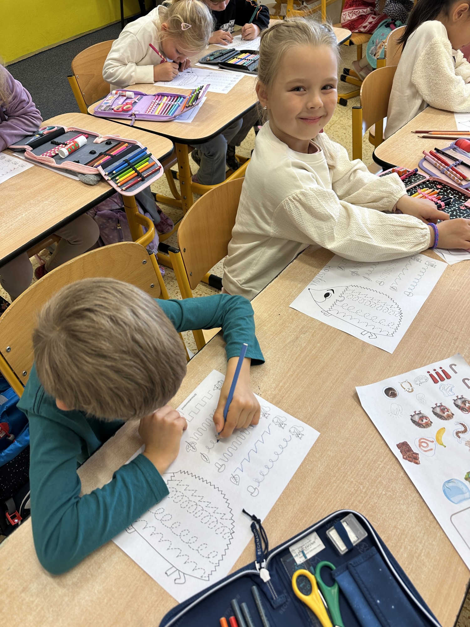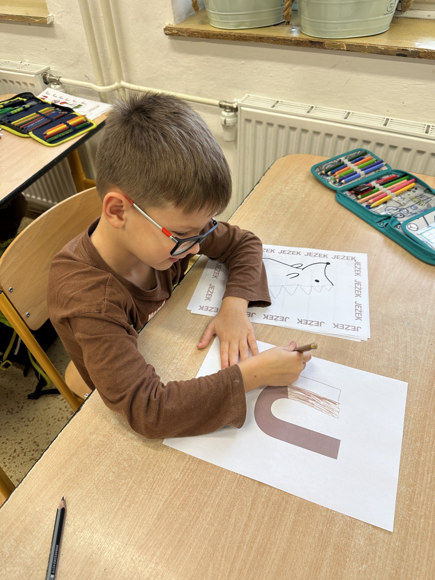 Během dne si žáci procvičovali ježčí grafomotoriku. Dostali také kreativní úkol – nakreslit ježka z písmene J, což se jim podařilo s velkou fantazií a nadšením.