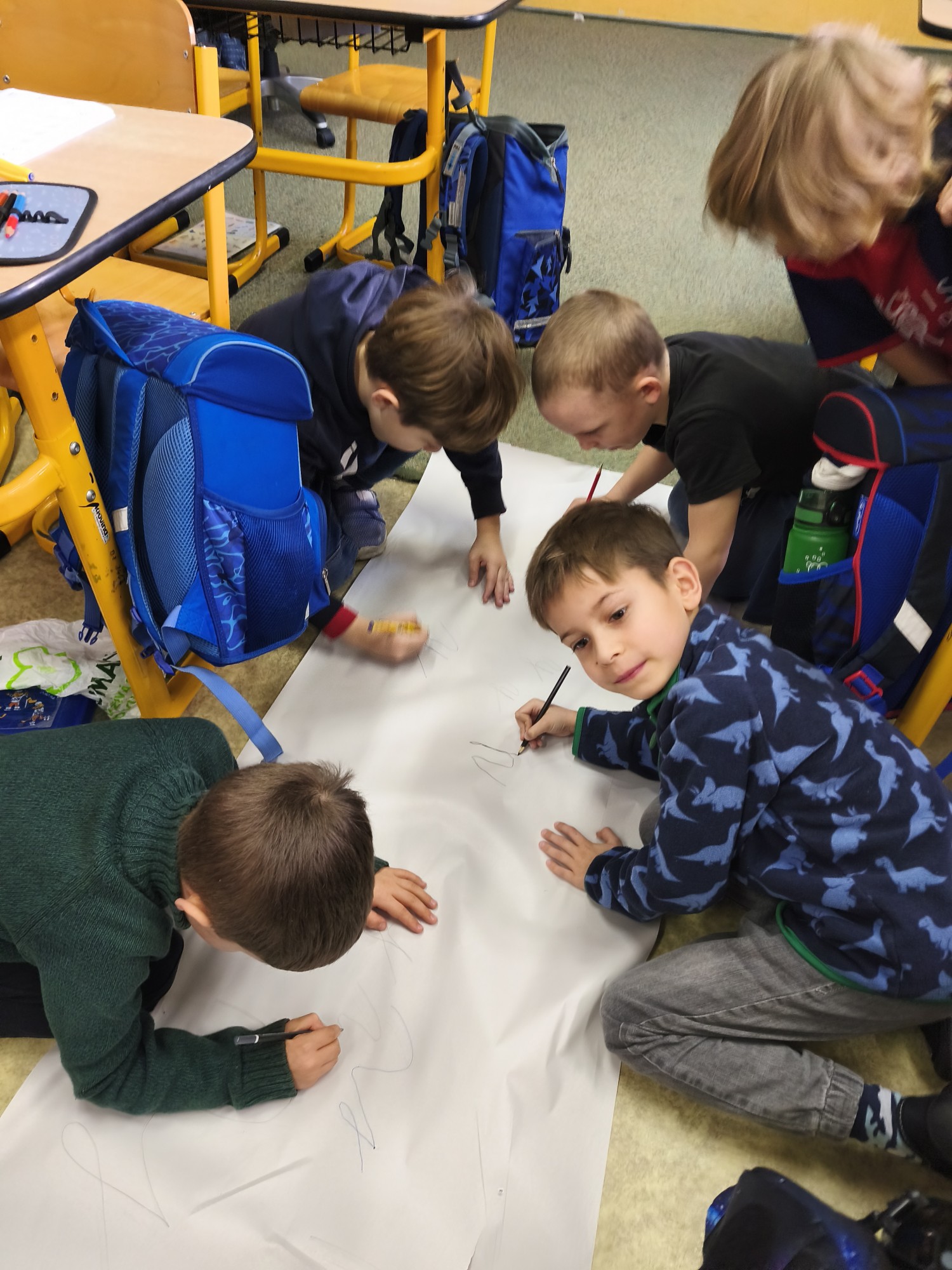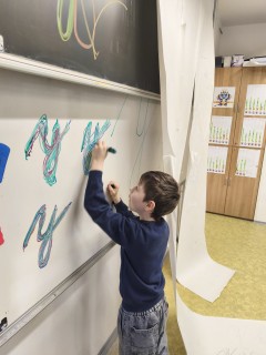 V naší první třídě se i obyčejná role balicího papíru dokáže proměnit v pořádné dobrodružství. Začali jsme poctivě procvičováním psacího tvaru malého písmena y. Jenže jakmile jsme na balící papír přestli dávat pozor, stal se z něj prales plný malých tiskacích písmenek. A uprostřed toho pralesa byl uvězněný další díl slabikáře. Získat ho zpět jsme mohli jen tak, že každému písmenku najdeme slovo, ve kterém se může "ubytovat".