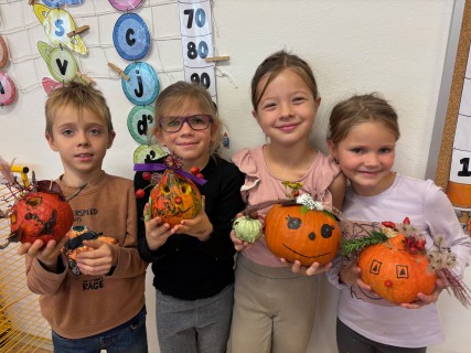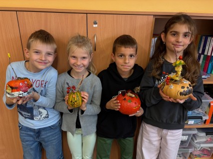 Podzimní atmosféra zavítala i do třídy 2.A, kde se uskutečnilo veselé a tvořivé dýňobraní. Děti se pustily do zdobení dýní pomocí přírodnin.