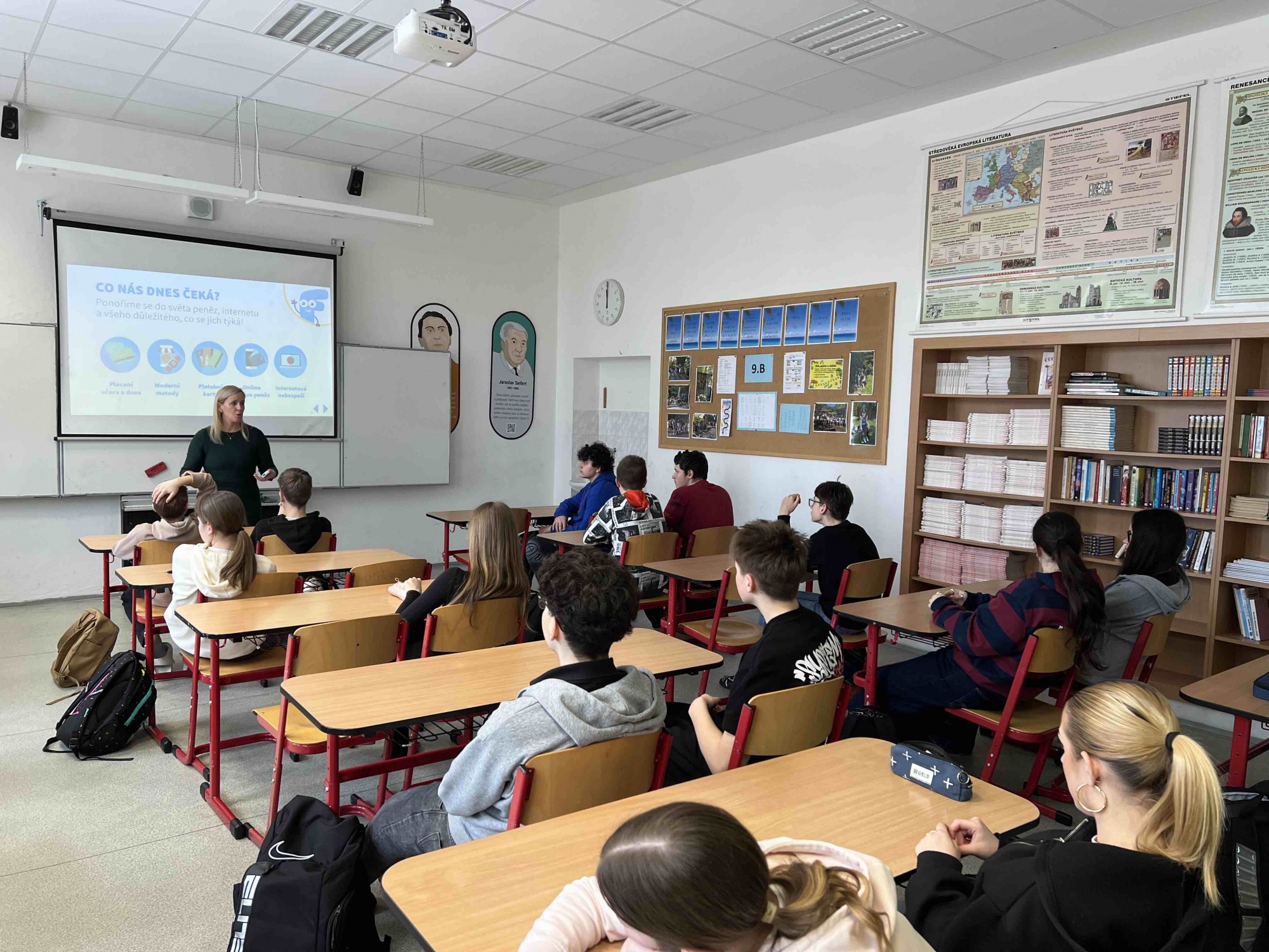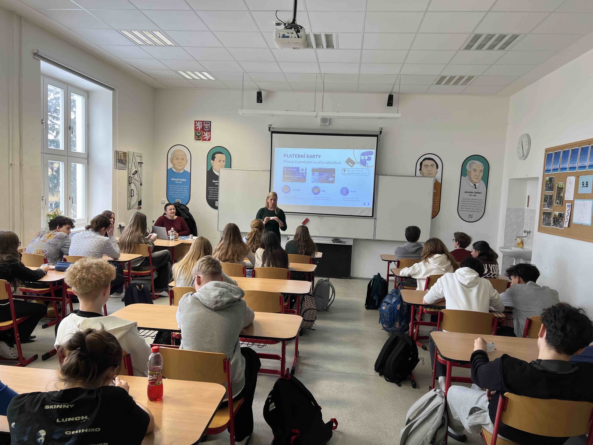 Dnes jsme se v rámci výuky finanční gramotnosti zúčastnili zajímavé přednášky, kterou vedly dvě zástupkyně banky ČSOB. Dozvěděli jsme se spoustu nových informací o tom, jak fungují platební karty, k čemu všemu slouží a jaké mají výhody.