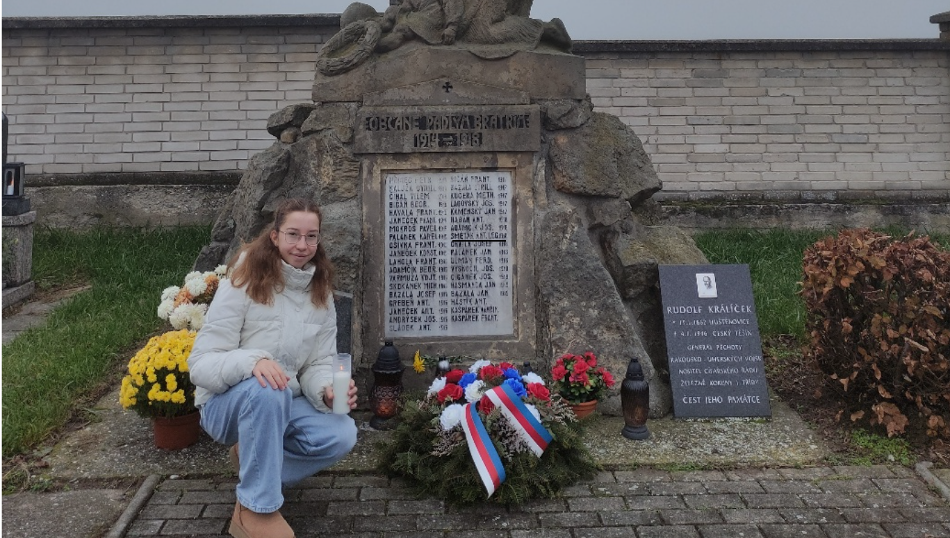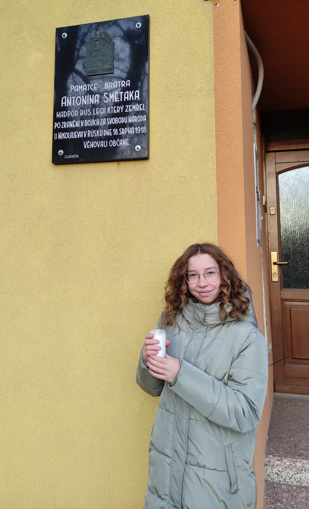 Julie Šobáňová z 8. B uctila památku svého prapradědečka, československého legionáře Antonína Smětáka z Huštěnovic.