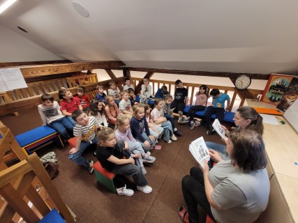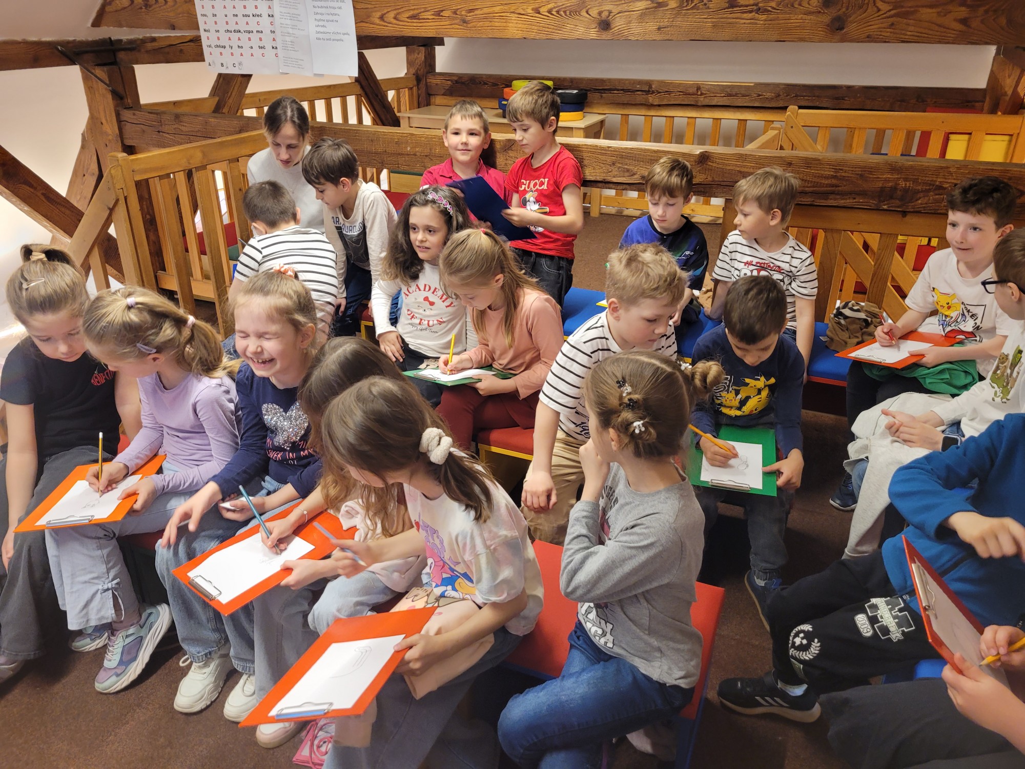 Prvňáčci z 1.C navštívili v pátek 17. dubna knihovnu BBB, kde je přivítaly paní knihovnice a barevné regály plné knih. Hlavním tématem setkání byla knížka Karlíček a vosy, která děti zaujala veselým příběhem i obrázky. Děti si poslechly povídání o vosách — jak žijí, proč jsou důležité a jak se k nim bezpečně chovat. Na základě popisu měli žáci ztvárnit Karlíčka. Po pár minutách vznikla spousta originálních výtvorů. Na závěr se děti podívaly na pohádku o Vose Marcelce, která návštěvu krásně zakončila.