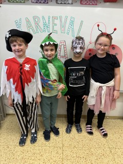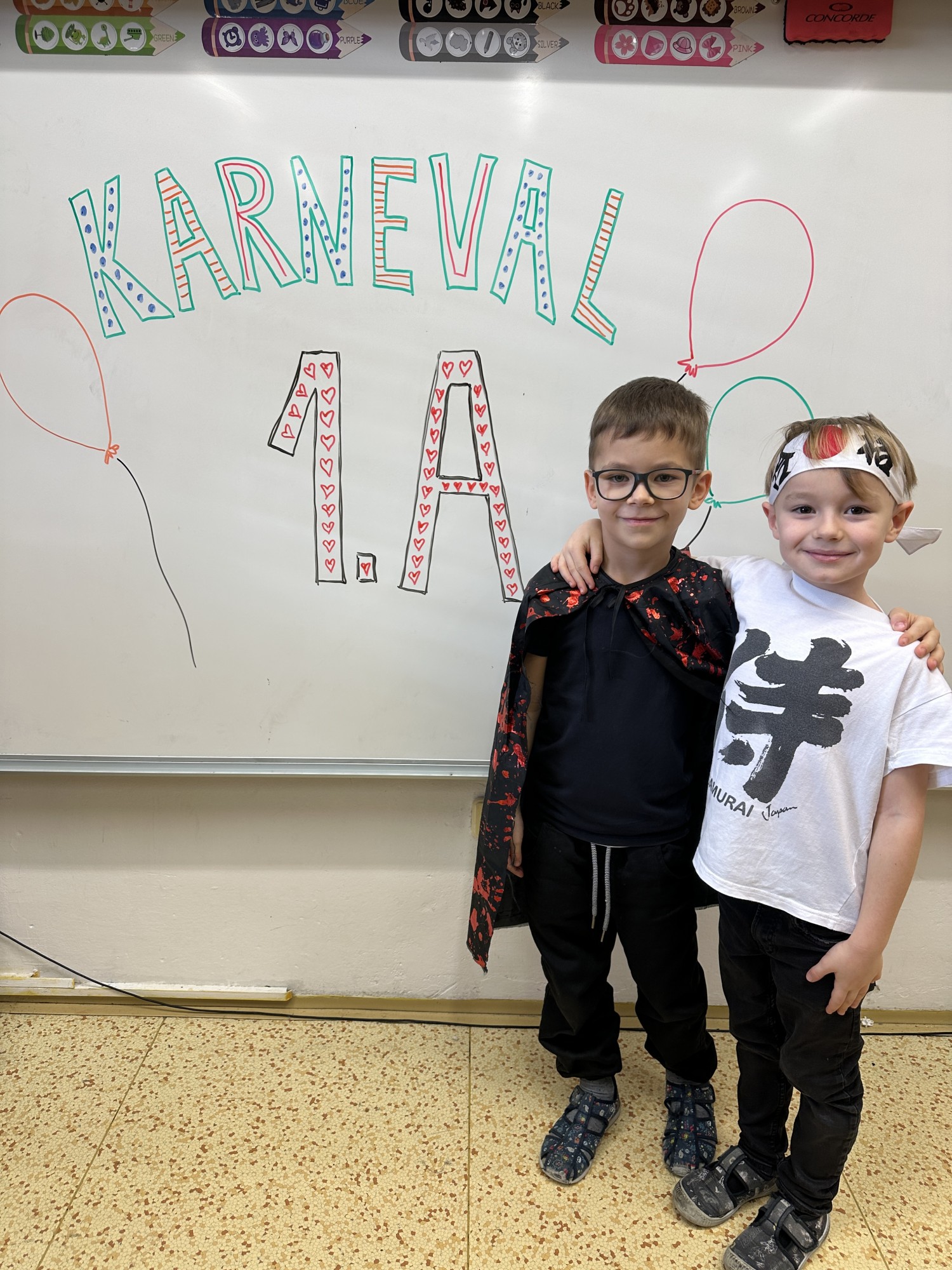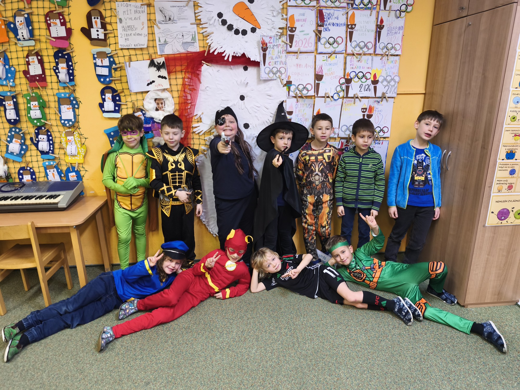 V pátek se naše škola proměnila v pohádkové království plné princezen, superhrdinů, zvířátek i tajemných postav. Žáci tříd 1.A a 1.B totiž prožili karnevalový den.