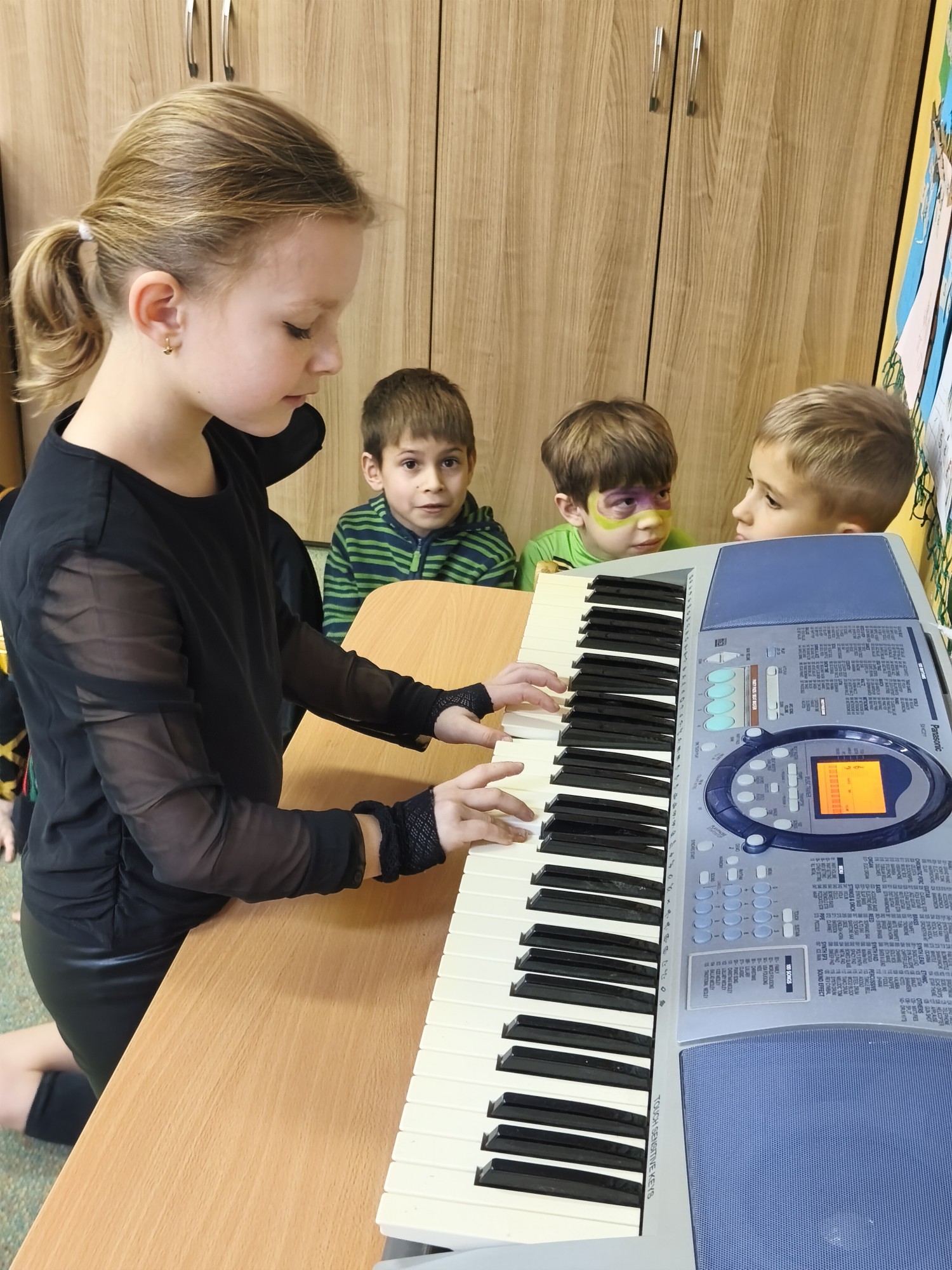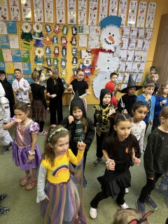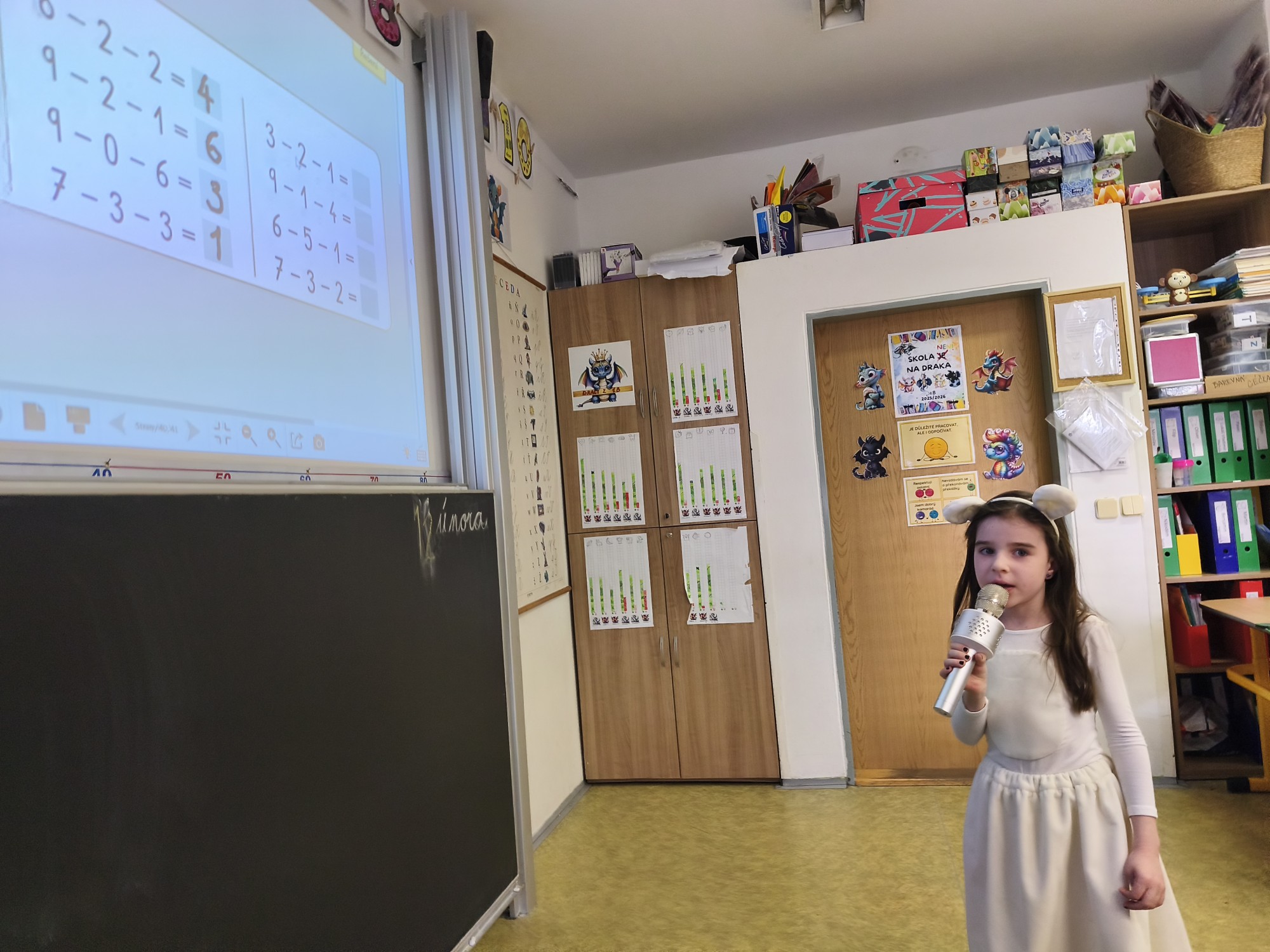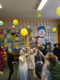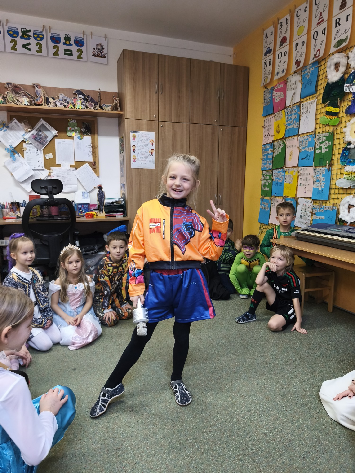 O velké přestávce se třída proměnila v taneční parket. Rozjela se totiž karnevalová diskotéka! Z reproduktorů zněly veselé písničky a malí tanečníci okamžitě zaplnili prostor. Nechyběla ani oblíbená makarena nebo Just Dance.