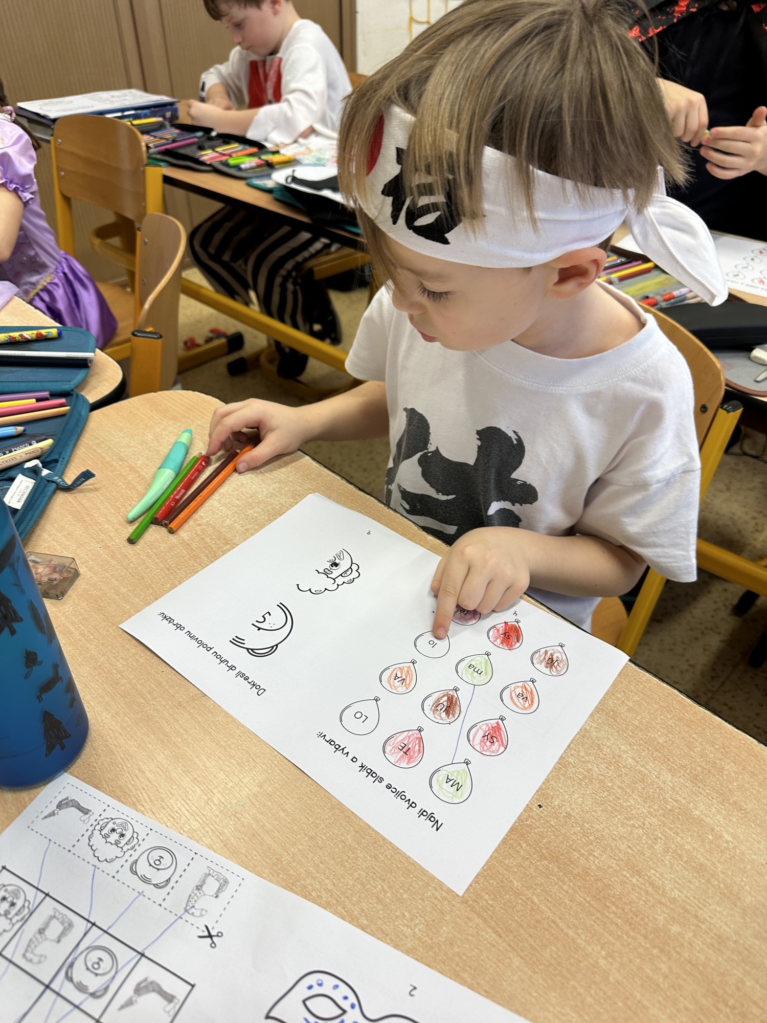 Hned ráno bylo jasné, že půjde o výjimečnou událost. Do tříd nepřišli jen prvňáčci, ale také piráti, víly, policisté, fotbalisti, kočičky, kosmonaut, jednorožci i několik odvážných ninja bojovníků. Děti si daly na maskách opravdu záležet – některé si kostýmy samy vyráběly doma s rodiči a s velkou hrdostí je spolužákům představovaly.