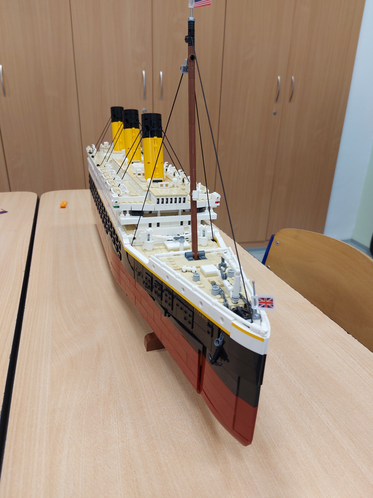 Lego stavebnice TITANIC míři do svého velkého finále. Chybí ještě postavit záď lodi a bude hotovo. Pak ještě žáci badatelského kroužku nainstalují led osvětlení a Titanic může vyplout.