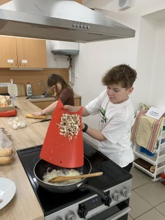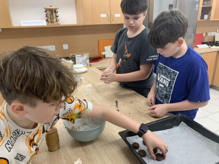 Kdo by si myslel, že březen je jen o čekání na jaro, ten u nás ve školním klubu Malý kuchtík rozhodně nebyl! Naši malí kuchaři totiž nasadili zástěry, vyhrnuli rukávy a pustili se do pořádné gastronomické jízdy. Nejprve provoněli školu sladkými kokosovými sušenkami zvanými Koka. Některé zmizely ještě dřív, než stihly úplně vychladnout. Pak jsme se vydali na výlet do Polska – alespoň tedy chuťově. Na programu byly typické zapékanky, které se povedly tak, že by je klidně mohli prodávat někde na krakovském náměstí! A aby toho nebylo málo, přišla na řadu poctivá domácí klasika: voňavé rohlíky a k nim pomazánka z cizrny, známá jako humus. A výsledek? Od každého druhu něco, všechno se povedlo, kuchaři se zdokonalili v technologických postupech, vytvořili skvělou partu – a hlavně si pořádně pochutnali. Takový kroužek bych si dala líbit!