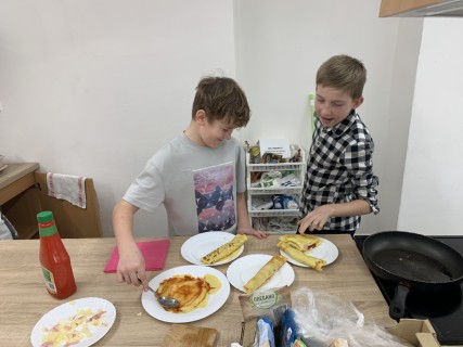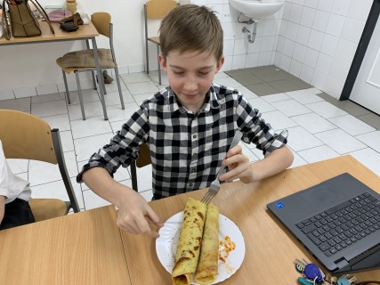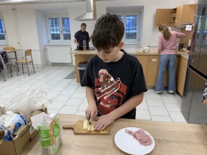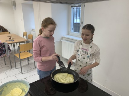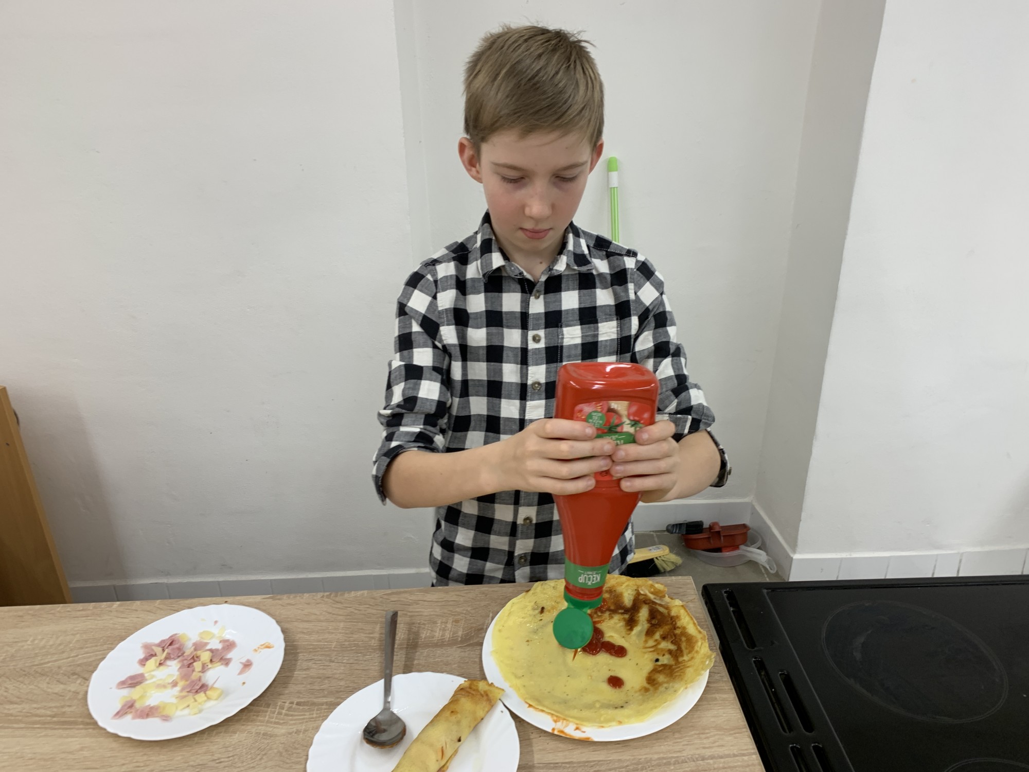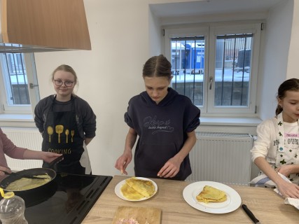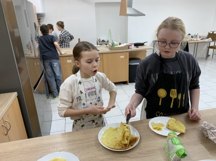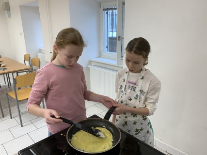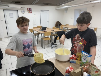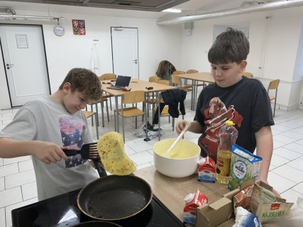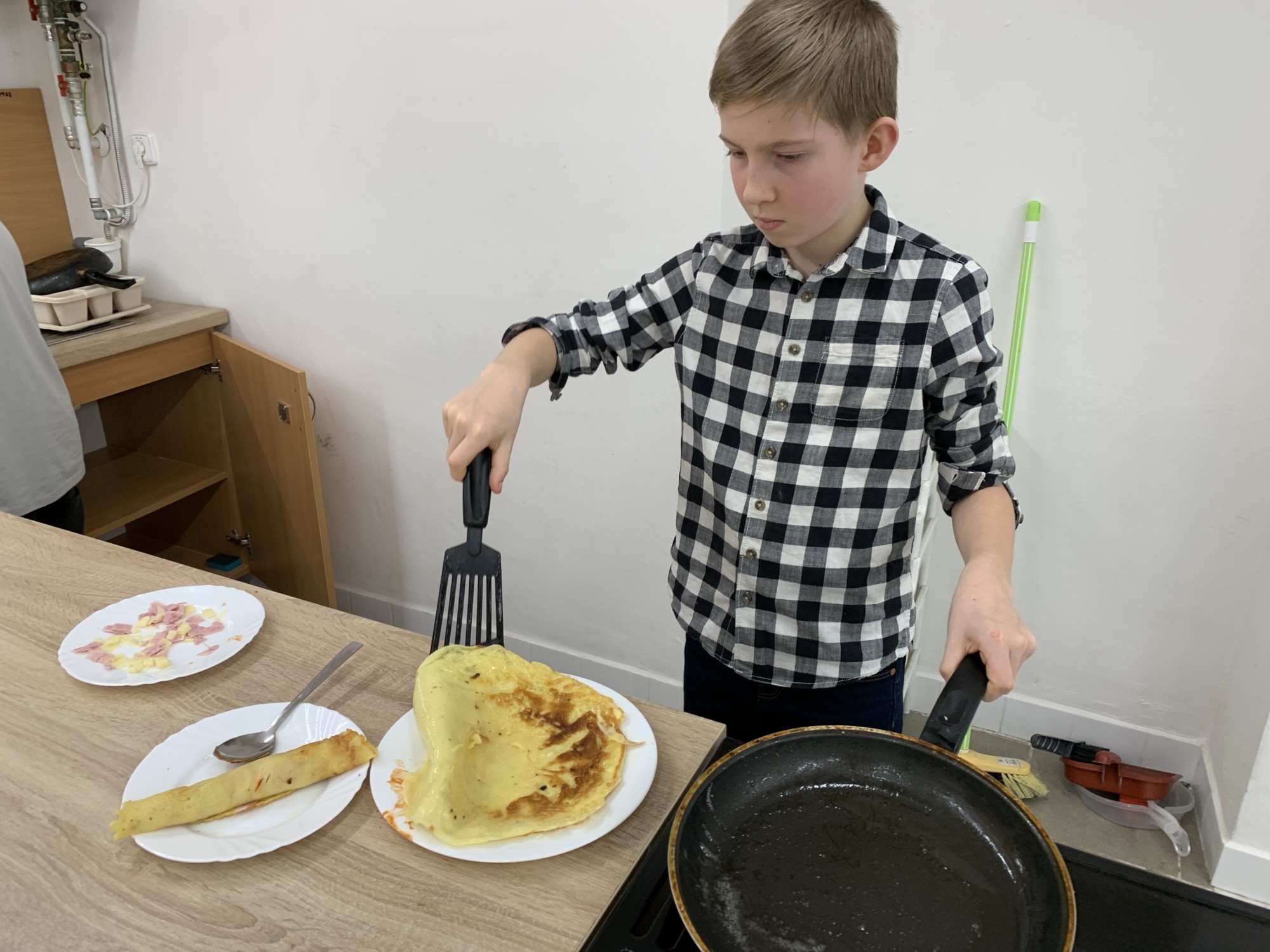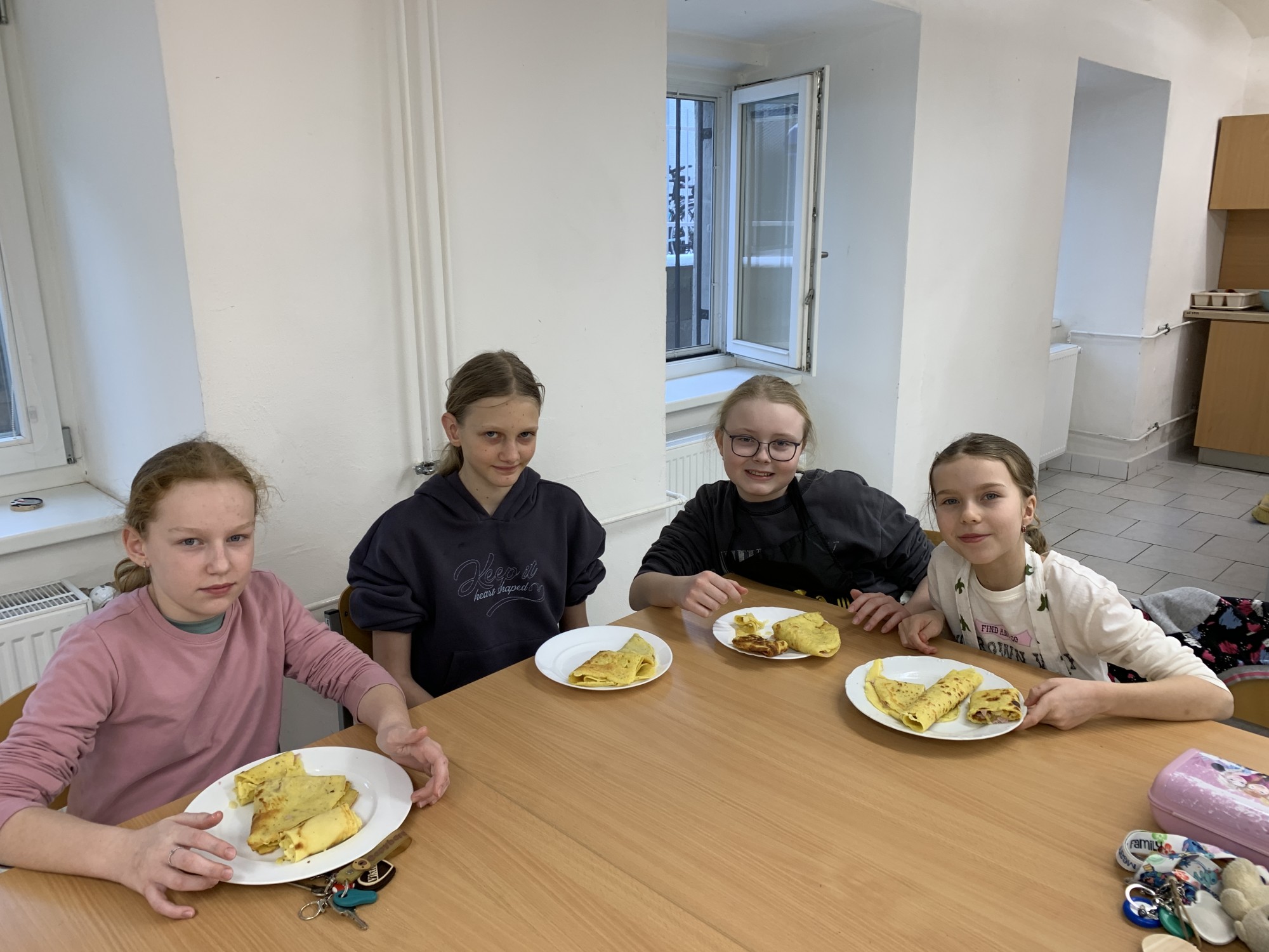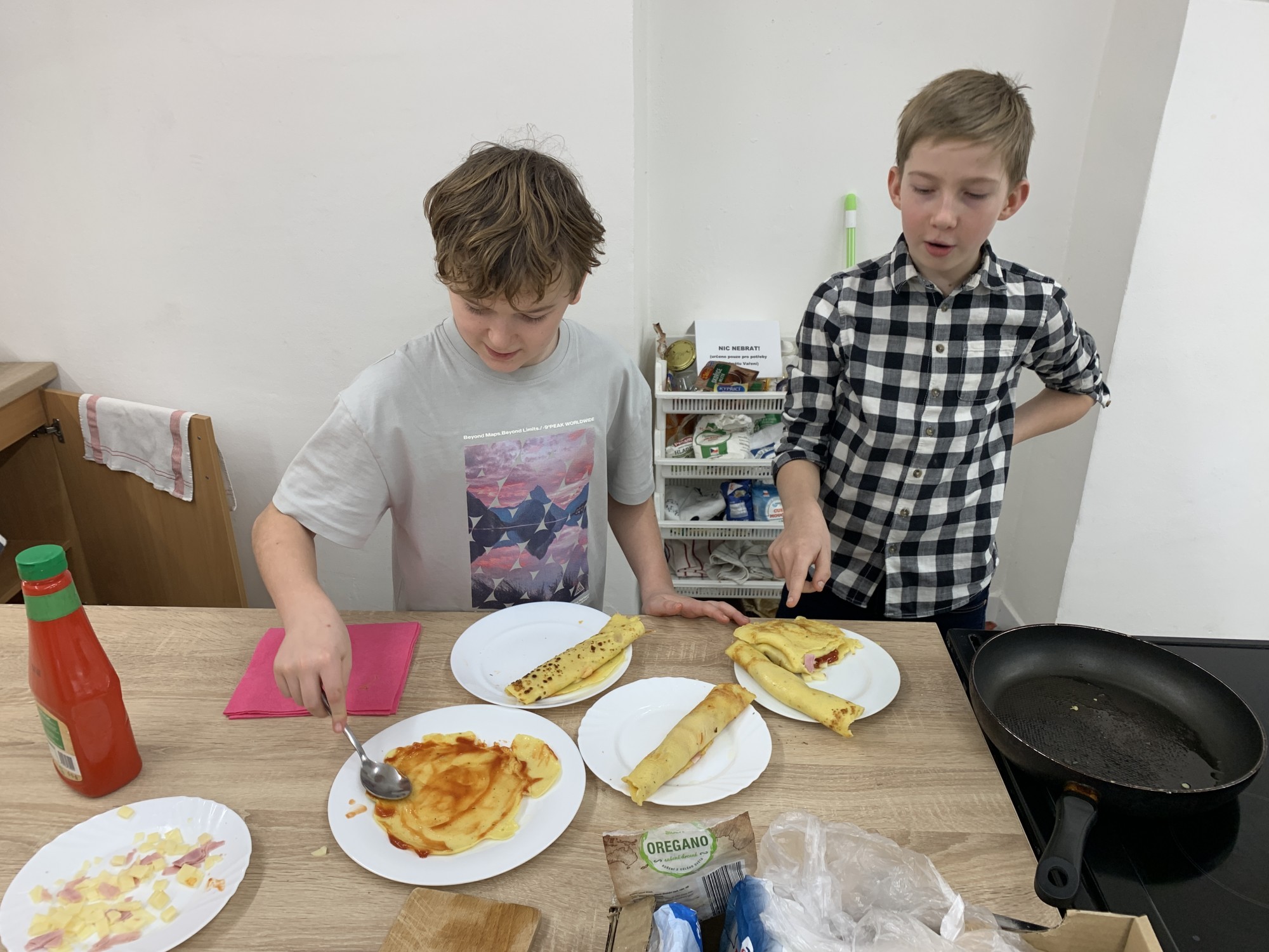 Kroužek Malý kuchtík je stále aktivní a do nového kalendářního roku vplul s chutí, elánem a plnou pánví. Na poslední schůzce jsme si dali slané palačinky plněné šunkou a sýrem – povedly se náramně a zmizely rychleji, než jsme stihli říct „dobrou chuť“.