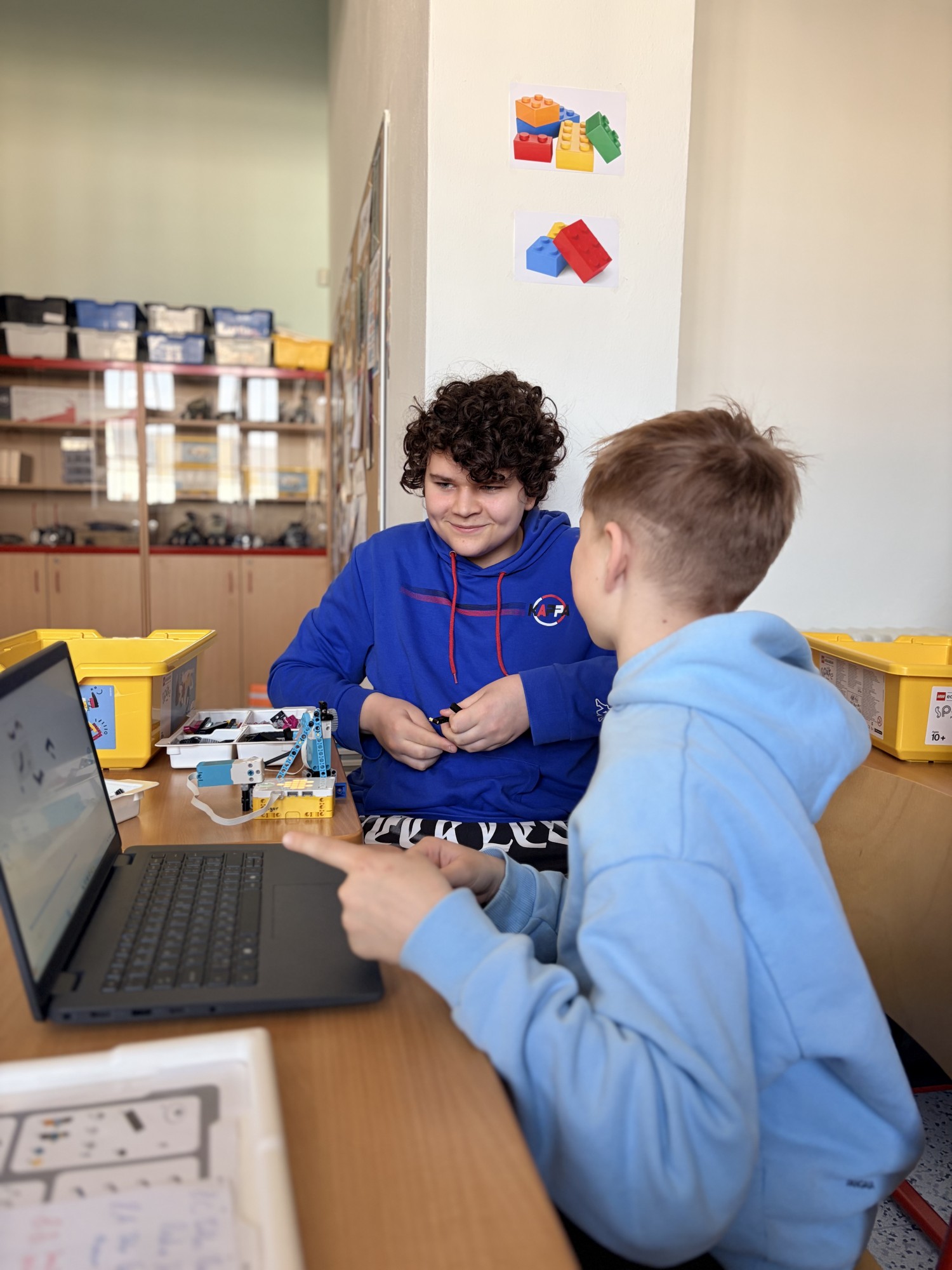 Škola pořídila nové stavebnice LEGO SPIKE Prime, které rozšíří možnosti výuky robotiky. Díky nim mohou žáci objevovat základy programování, konstrukce a technického myšlení zábavnou a praktickou formou. Stavebnice žáky velmi baví a práce s nimi je motivuje k tvoření i spolupráci. Nové sady zároveň nahradily starší roboty LEGO NXT, které už byly mnohdy nefunkční nebo ne zcela spolehlivé. Díky tomu nyní můžeme robotiku s LEGO SPIKE vyučovat od 7. až do 9. třídy. Žáci tak mají při výuce k dispozici moderní a lépe fungující vybavení.