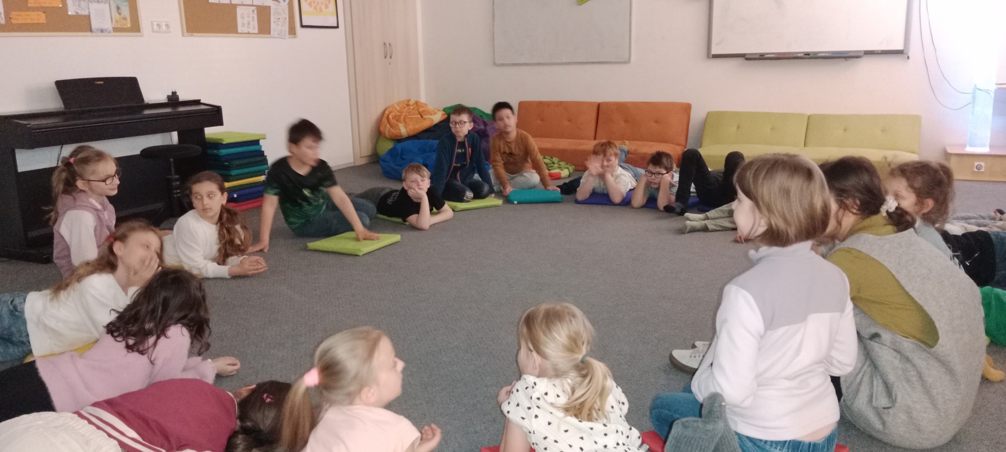 V rámci preventivního programu se naše třída již podruhé sešla se školní psycholožkou v relaxační místnosti. Zaměřili jsme se na podporu kamarádských vztahů mezi žáky. Děti se prostřednictvím her a společných aktivit učily vzájemné spolupráci, respektu a komunikaci. Program byl veden hravou a srozumitelnou formou. Žáci měli možnost sdílet své pocity a otevřeně se vyjádřit k dění ve třídě. Setkání přispělo k posílení pozitivní atmosféry a podpoření dobrých vztahů.